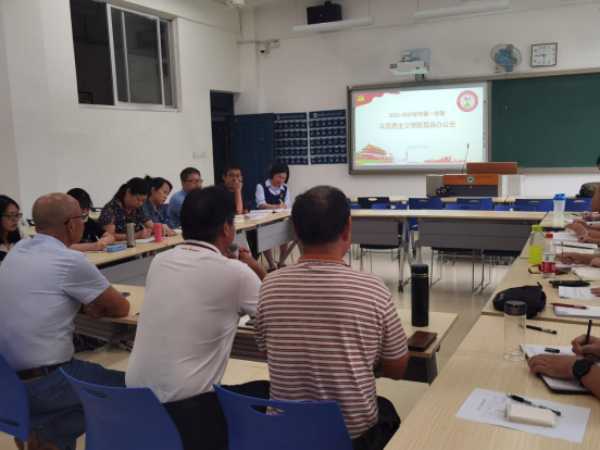 本网讯 为深入贯彻落实习近平总书记关于“大思政课”的重要指示批示和在中国人民大学考察时的重要讲话精神,9月6日下午,马克思主义学院在江南校区实训四204教室召开现场办公会,就《全面推进“大思政课”建设的工作方案》进行专题研究学习。学院党委书记万泉、党委副书记严绍裕、副院长罗立仪、马克思主义学院院长郭先根和马克思主义学院全体教师参加会议。马克思主义学院副院长陆晓莉主持会议。