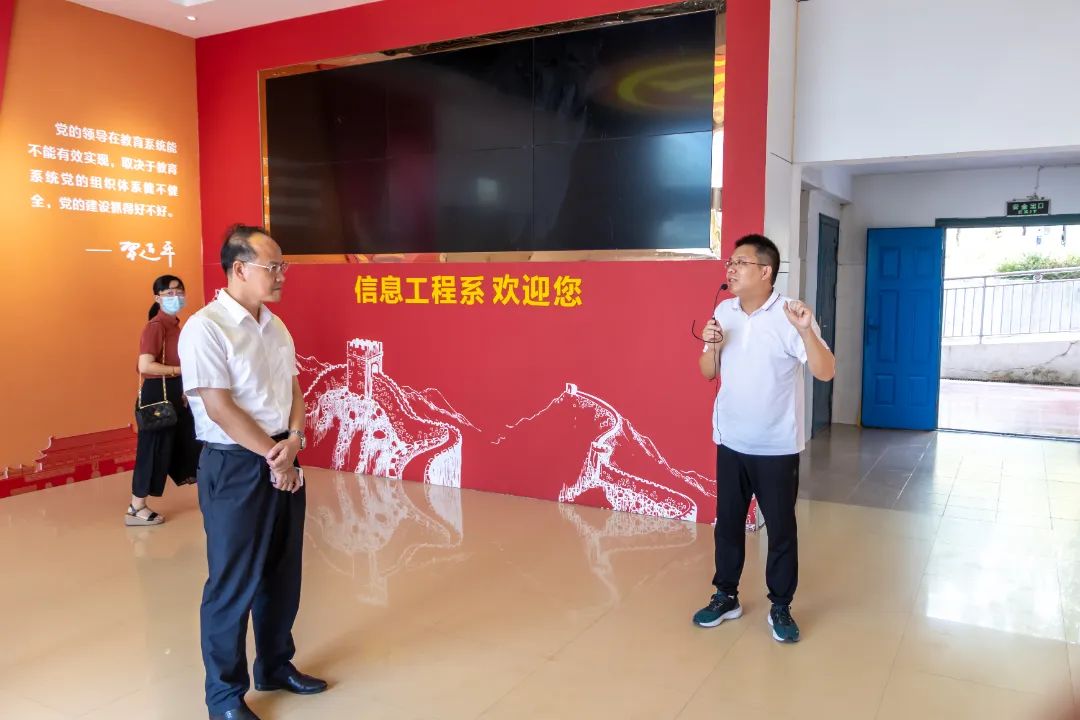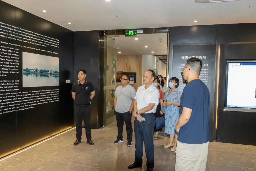 马国玄副院长一行在我院党委副书记严绍裕、学生工作部部长蔡敏、团委书记陈友益等相关领导的陪同下,先后参观了我院办学成果展览馆、森林生态综合馆、“全国党建工作标杆院系”信息工程系党建馆、江南体育馆等,对学院整体办学情况和“三全育人”工作进行了全方位了解。