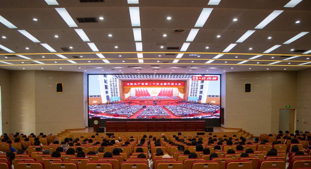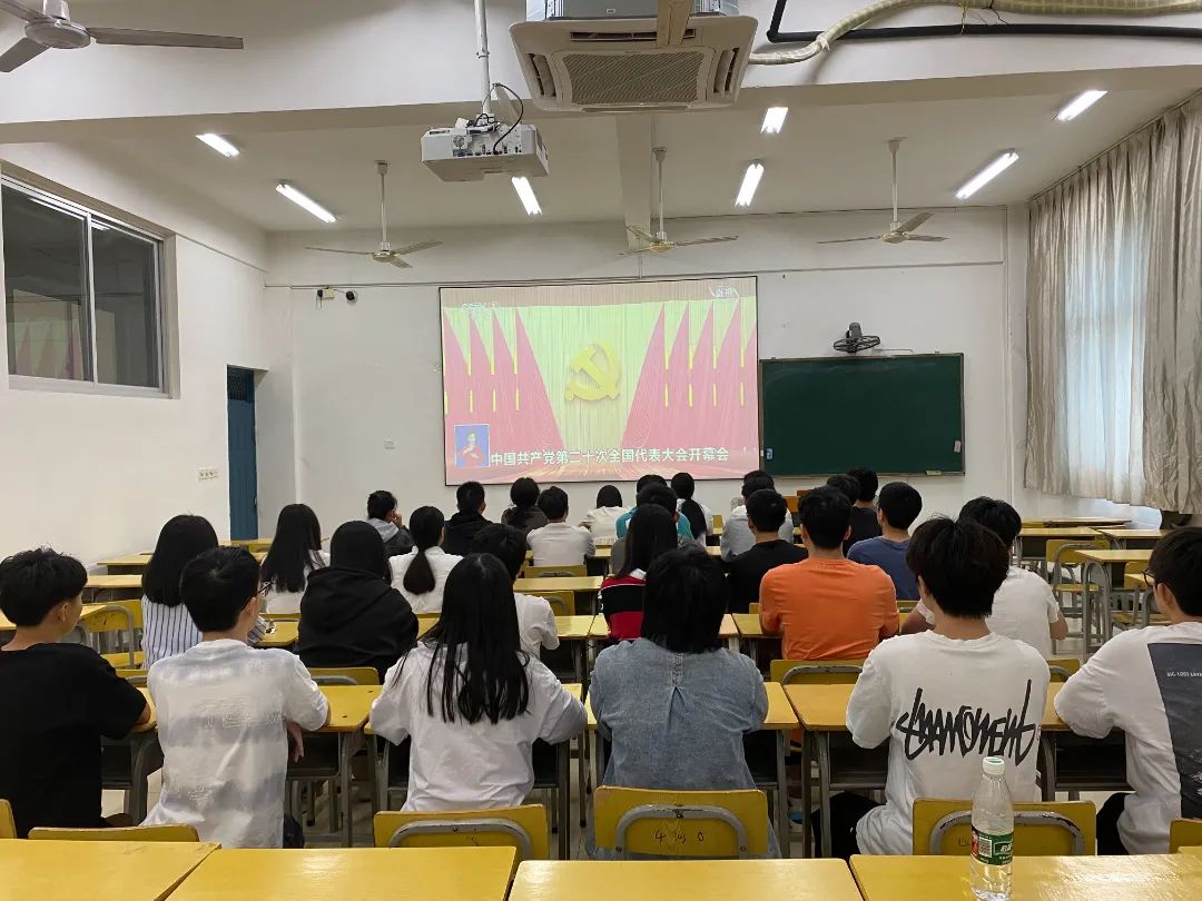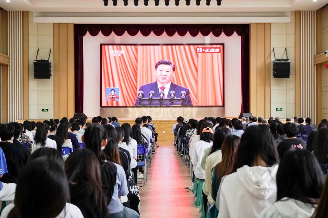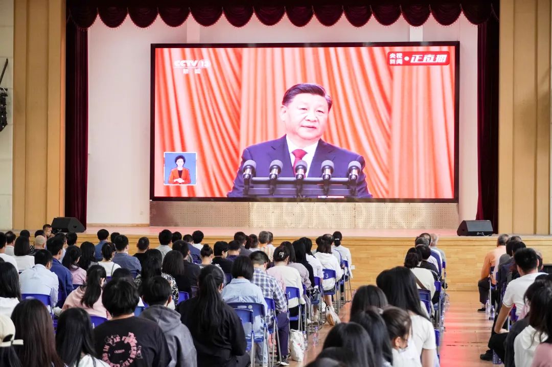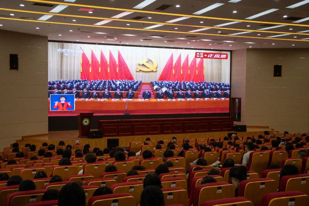 学院党委委员,全体教师党员,学生党员代表集中学院江南图书馆报告厅、天麟礼堂观看开幕会直播
