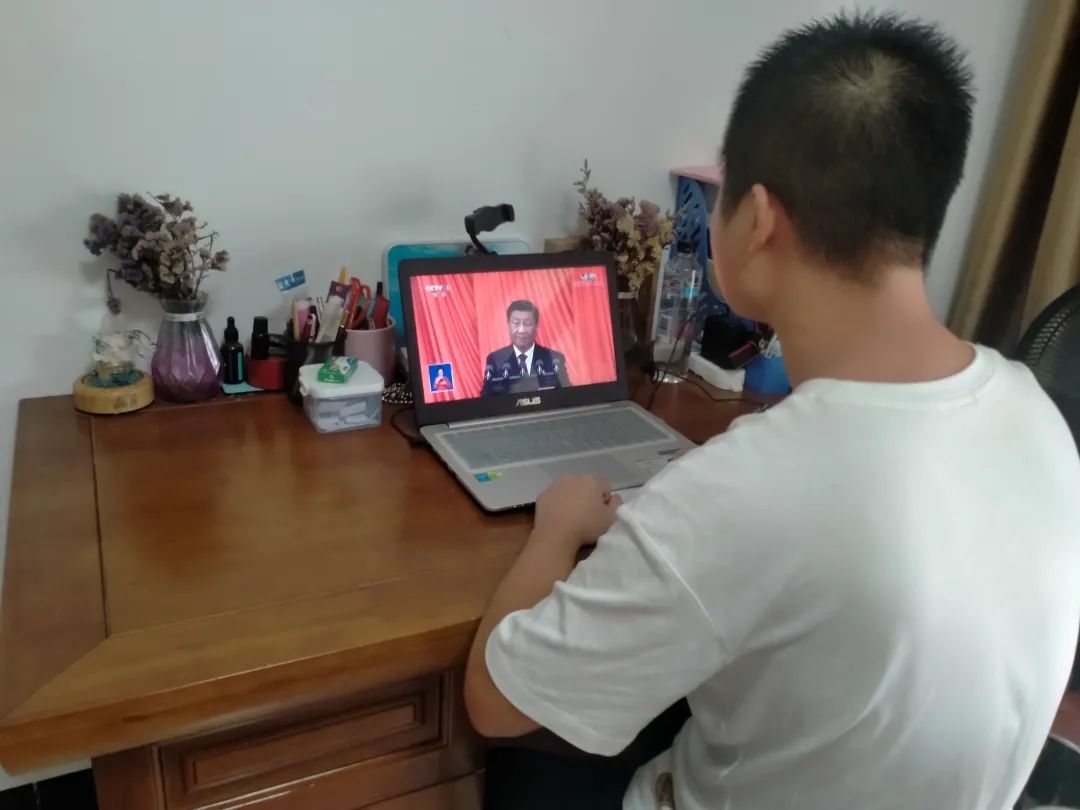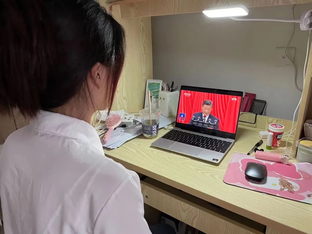 广大师生通过电视、网络媒体等途径在办公室、家中、宿舍、校内电子屏等场所收听收看开幕会实况