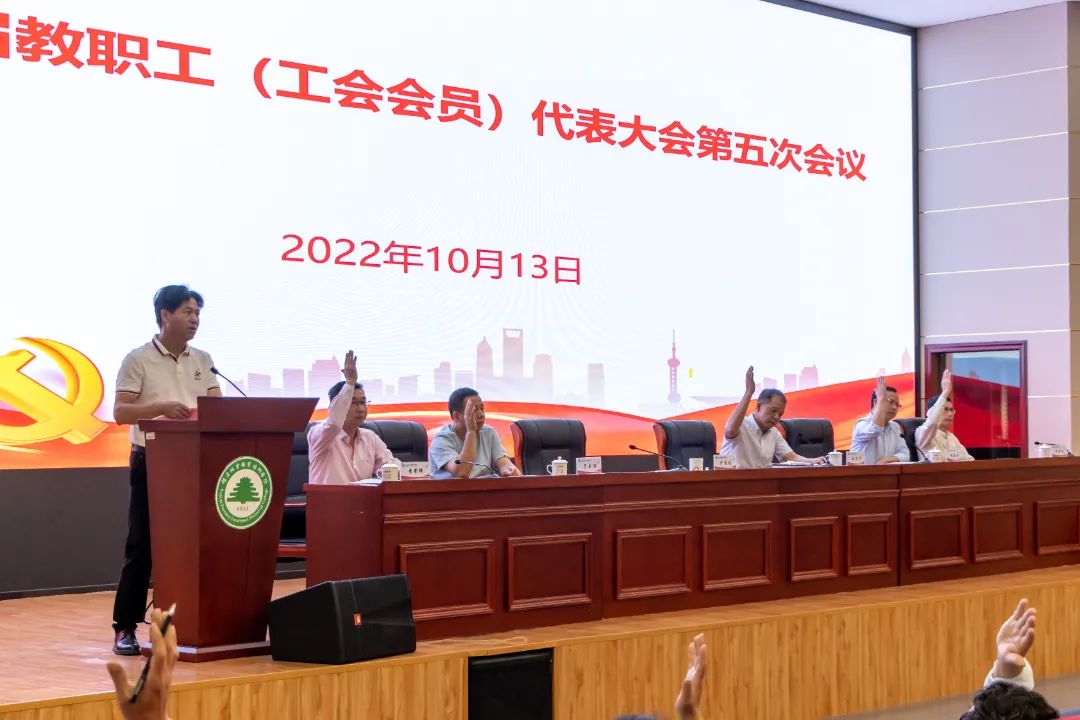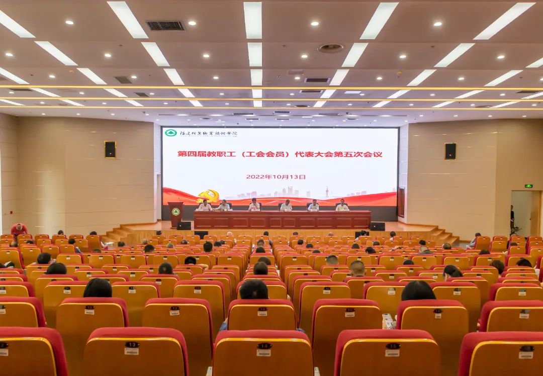 本网讯 10月13日下午,学院在江南图书馆报告厅召开第四届教职工(工会会员)代表大会第五次会议,全体教(工)代会代表和列席代表参加了会议。会议由院党委副书记严绍裕主持。