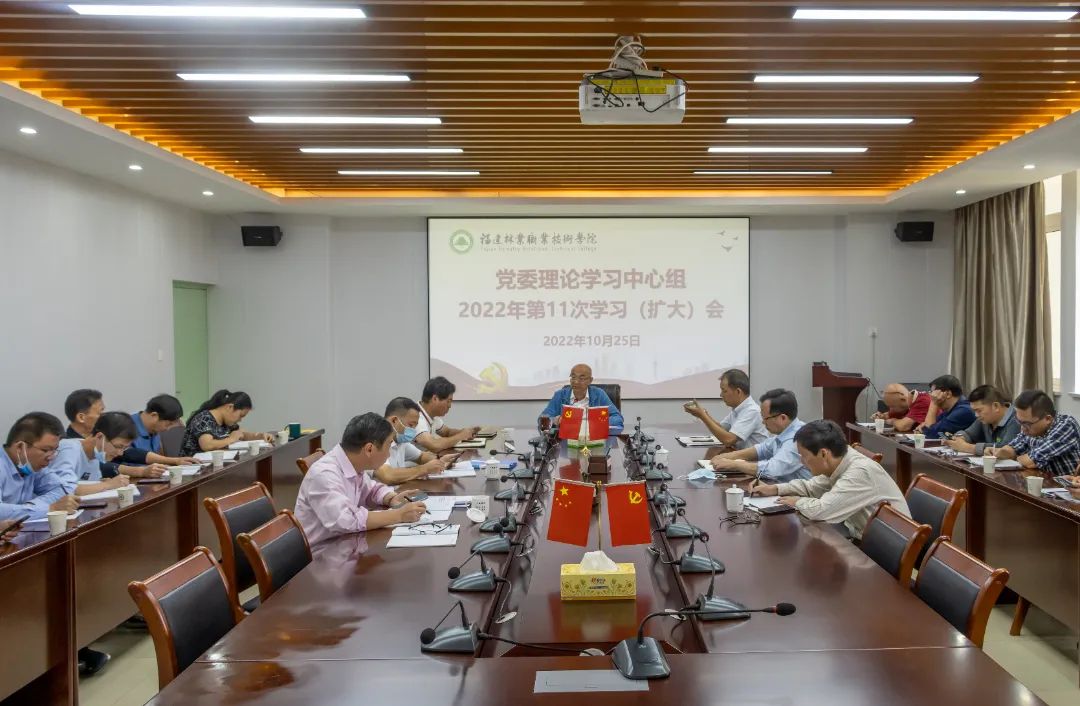本网讯 10月25日下午,院党委书记万泉在江南校区行政楼第一会议室主持召开院党委理论学习中心组学习(扩大)会议,专题学习党的二十大精神,研究部署我院初步学习宣传贯彻意见。