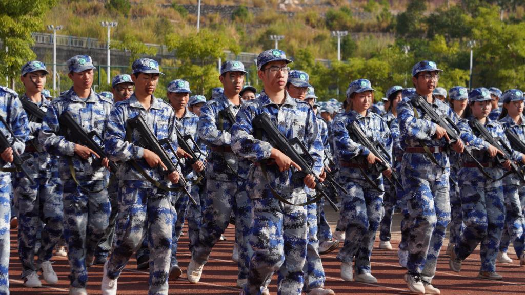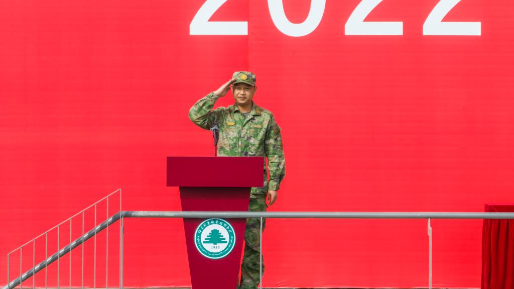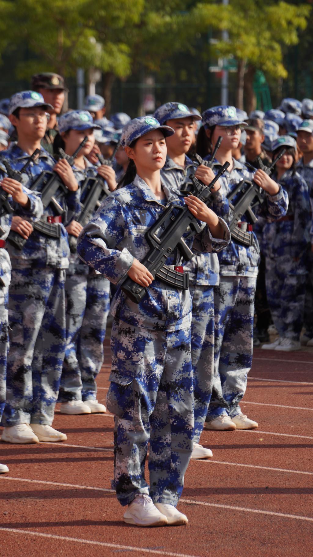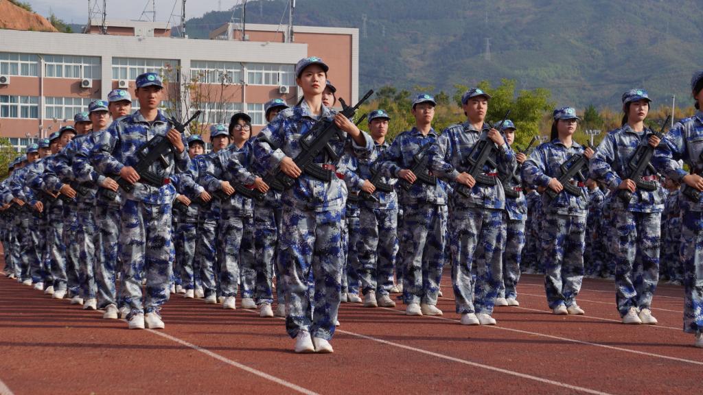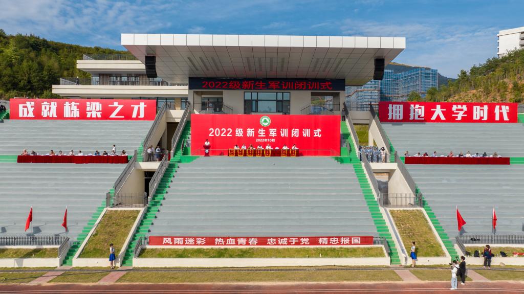 本网讯 沙场点兵砺青春,鲜衣怒马检阅时。2022级全体新生,整装待发,汇报为期十六天的军训成果。10月25日上午,2022级新生军训闭训式分别在江南校区和天麟校区田径场隆重举行。