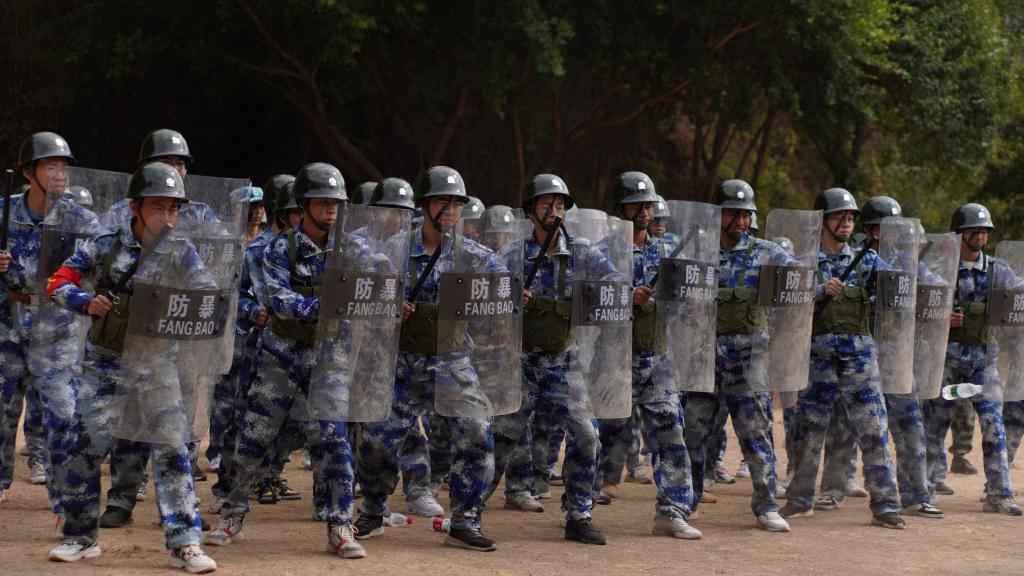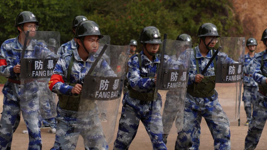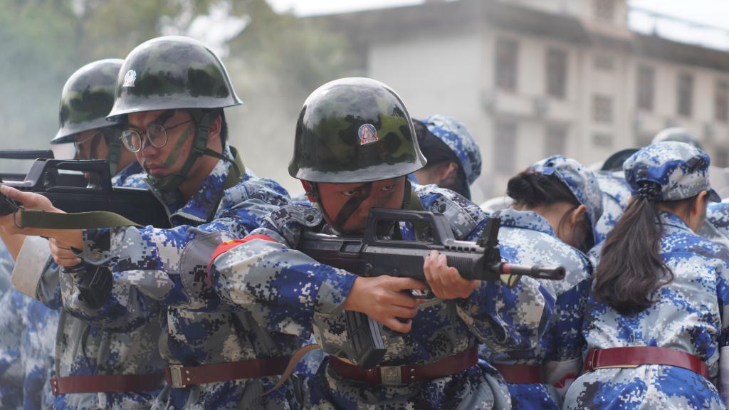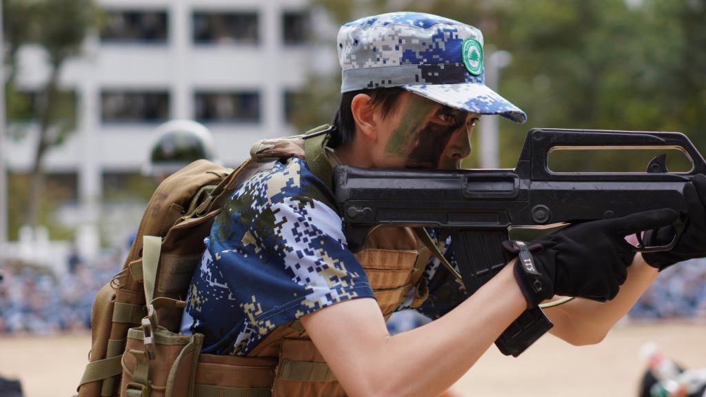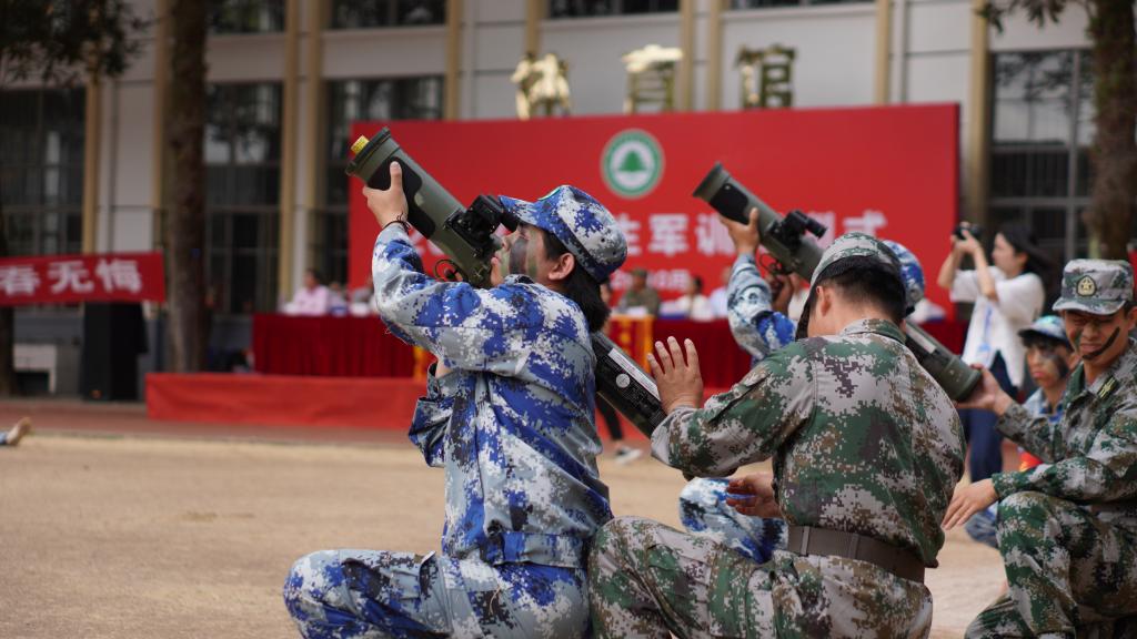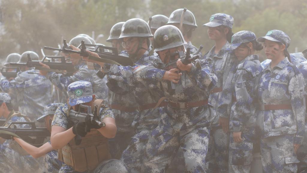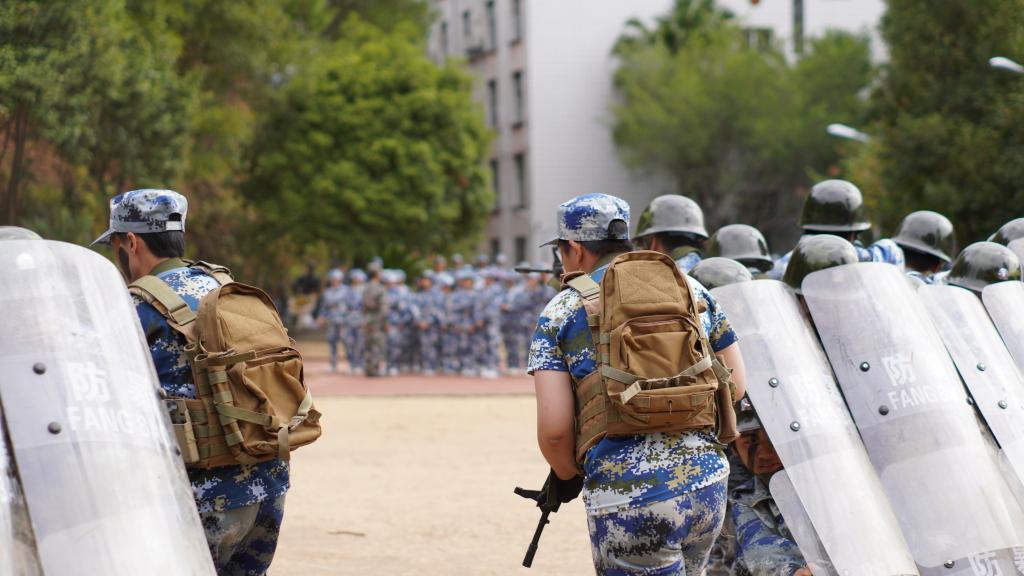 瞄准射击、侦查抓捕、散打拳击。吹过的风,淋过的雨,晒过的太阳,流过的汗水全都汇成军训汇演时无穷的力量。