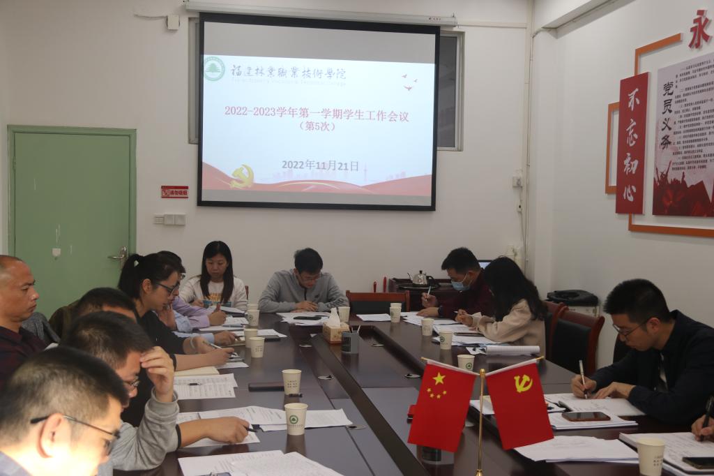 本网讯 11月21日上午,我院在江南校区行政楼四楼会议室召开2022-2023学年第一学期第5次学生工作例会。会议由院党委副书记严绍裕主持。学生工作部、安全保卫处、团委等部门负责人,各系党总支书记参加了会议。