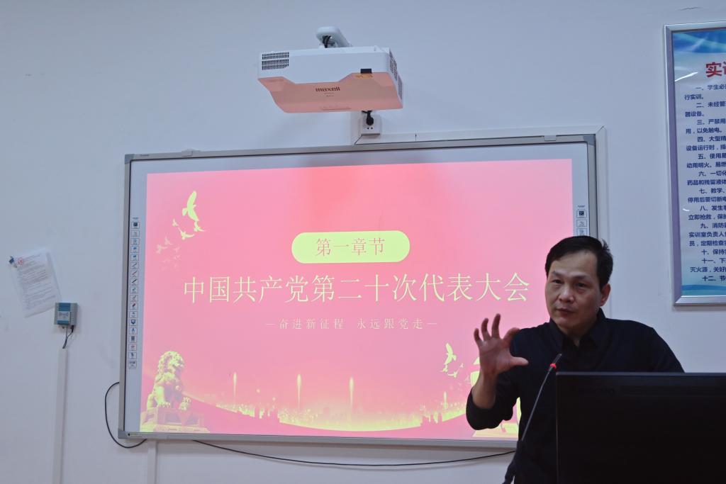 黄副院长指出,教育是国之大计是党之大计,党的二十大报告中强调要办好人民满意的教育,统筹职业教育、高等教育、继续教育协同创新,推进职普融通、产教融合、科教融合,优化职业教育类型定位,这进一步为职业教育发展指明了前进方向,绘就了美好蓝图。作为教育工作者要以立德树人为根本,准确领会和把握党的二十大精神的思想精髓、核心要义,牢固树立坚定不移听党话、跟党走的理想信念,立足自身岗位积极作为,为党育人、为国育才,培养技能强、素质优、能担当的技能型人才。