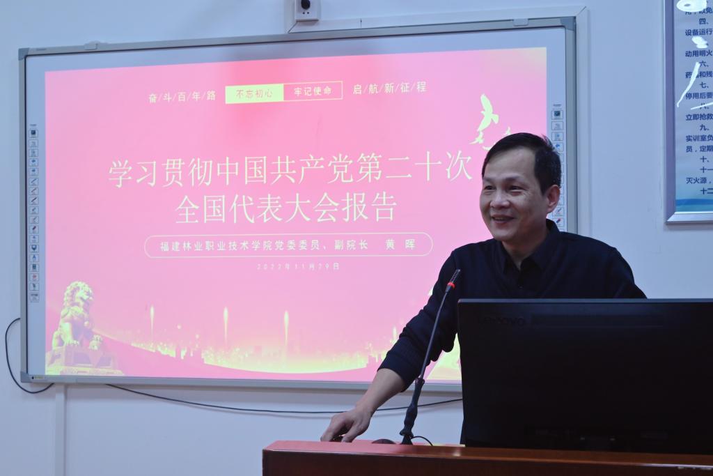 本网讯 为了深入学习贯彻党的二十大精神,2022年11月29日下午,黄晖副院长深入经济管理系带领全体教师学习领会中国共产党第二十次全国代表大会报告精神。报告会由经济管理系党总支书记谢福荣主持。