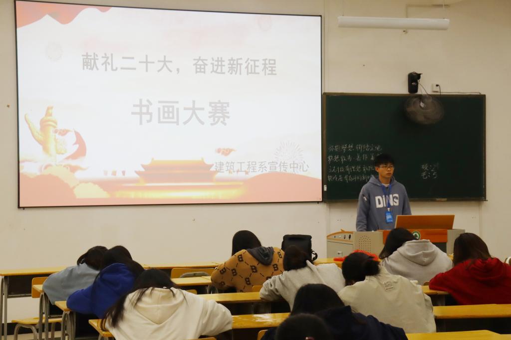 建筑工程系团总支通过组织“党建引领启新程,踔厉奋发向未来”演讲大赛、“献礼二十大,奋进新征程”书画比赛、“团结协助,凝心聚力向未来”学生篮球比赛、“携手献礼二十大,放歌青春著华章”2022年十佳歌手赛、“献礼二十大,以笔道真情”三行情书活动、“青春向党,‘剧’心灵阳光”心理情景剧大赛、“百辩青春,筑梦同行”第七届“翰林杯”辩论赛、升旗仪式暨晨跑活动等一系列启发性强、参与面广的团日活动,力求通过多样化形式让学生深入理解党的二十大内涵,精准把握外延,让奔涌的学习热潮传遍林院的每个角落。
