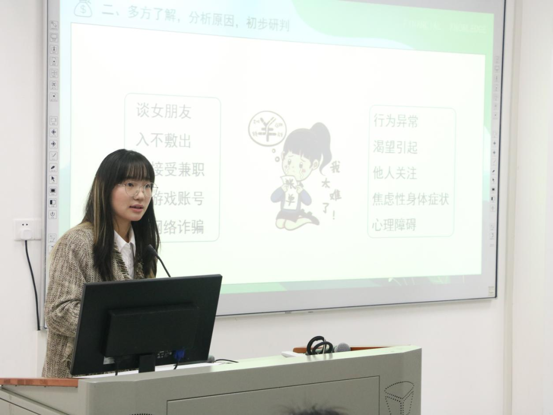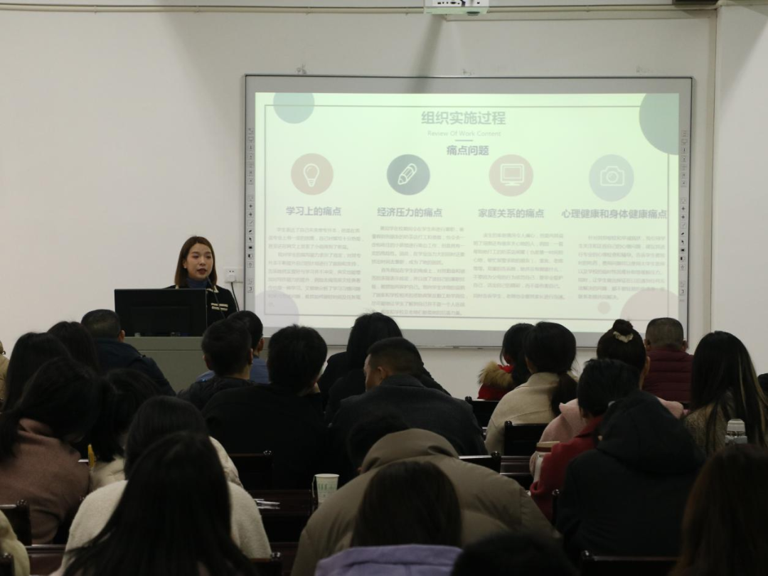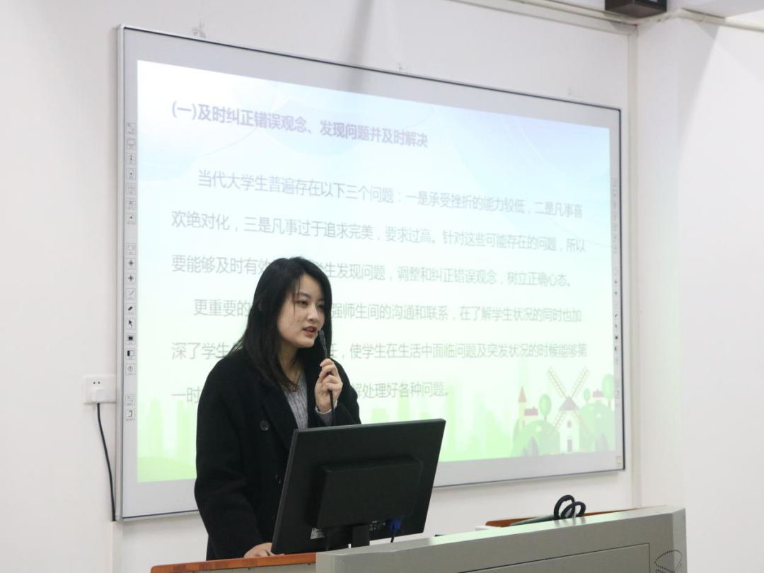读书会上,学生科科长温全军、李建文,辅导员张雨欣、陈慧婷、宋慧敏、郑燕丽、刘延君、秦英爱分别分享了自己在学生工作中遇到的恋爱情感、学业压力、亲子关系、人际交往、校园贷、心理危机干预等心理案例及体会,并结合典型案例详细讲解了处置过程与深度反思,探讨了如何解决学生心理危机,化危机为转机。