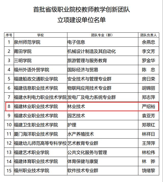 图6 林业技术教师教学创新团队入选首批省级创新团队