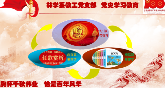 (四)“文化课堂”:坚持把党史学习教育融入各类文化活动中,积极参加庆祝建党百年系列活动,如歌咏比赛、五四活动、摄影展、植树活动等,传递党的最强音,更加自觉地传承发扬党的光荣传统和优良作风,努力做到“学史明理、学史增信、学史崇德、学史力行”;