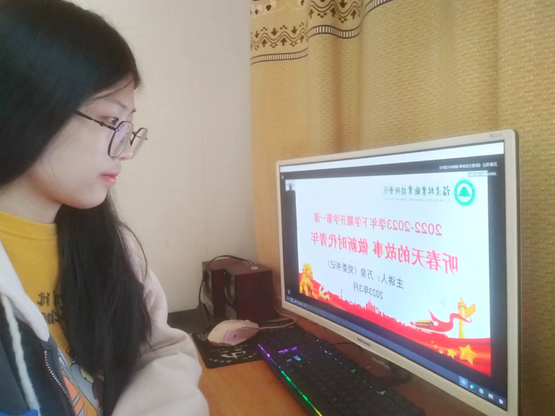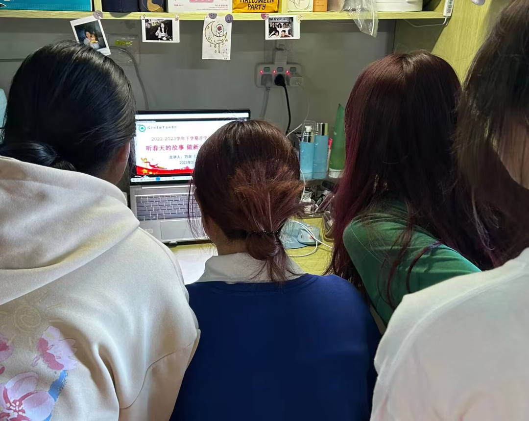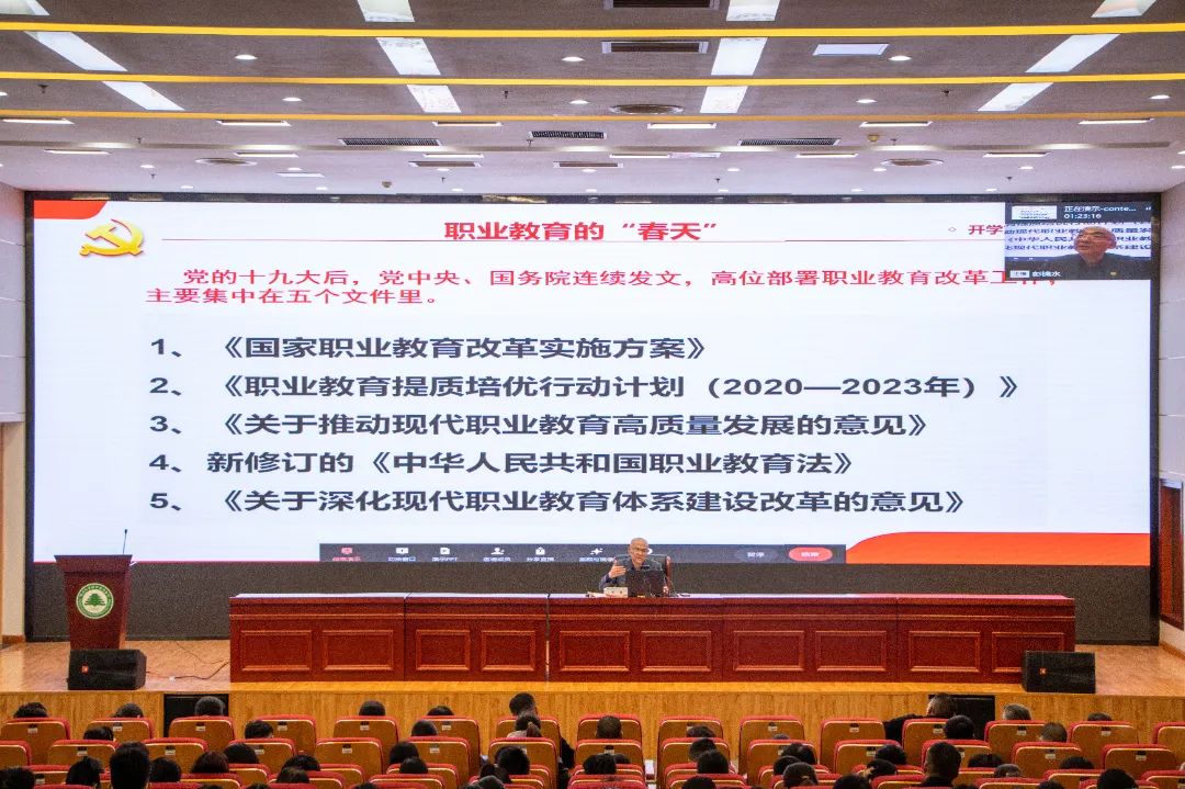 讲座围绕“东方风来满眼春,党的二十大擘画新时代的教育蓝图”“自信自强守正创新,在职业教育的春天里勇毅前行”“春回大地万物复苏,疫情防控进入新阶段”“不负春光不负韶华,立志做新时代好青年”四个方面娓娓道来,讲述了那些动听的“春天的故事”,万名师生线上线下齐感受春暖花开、春潮澎湃。