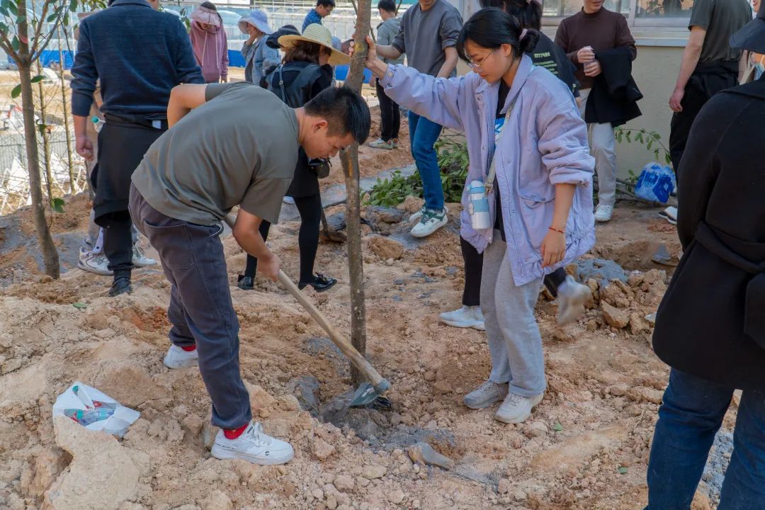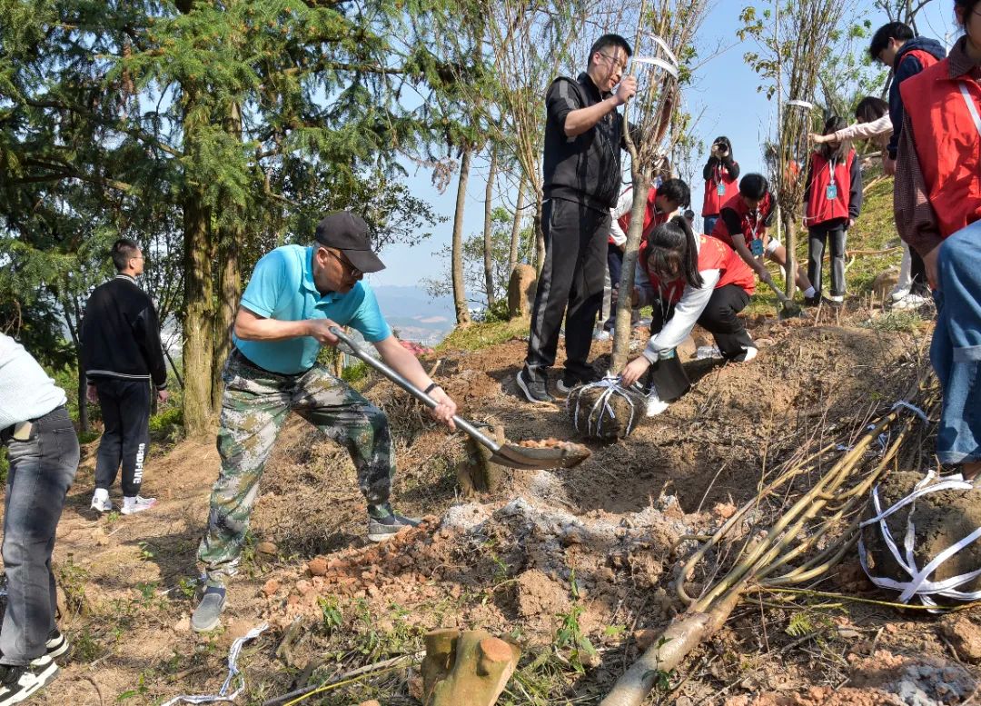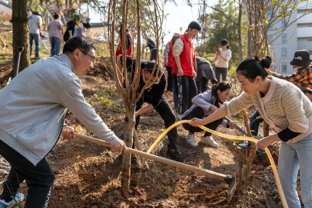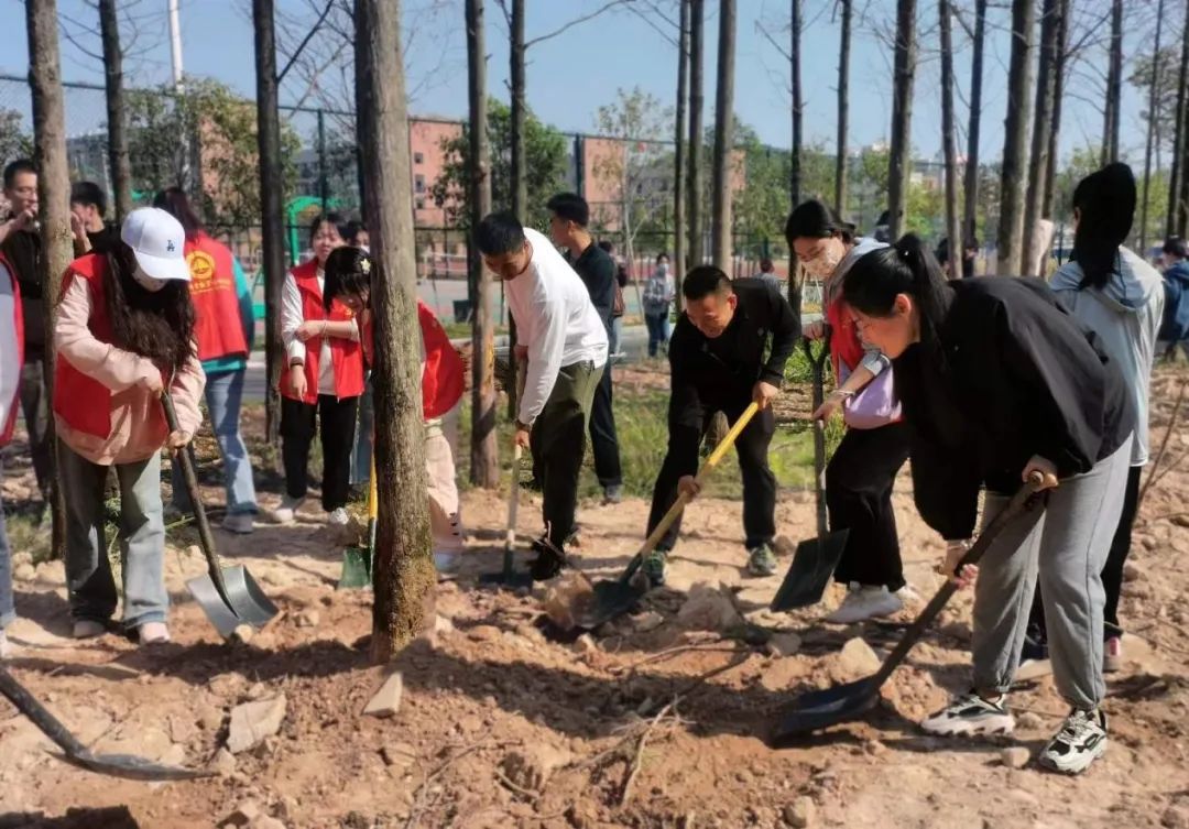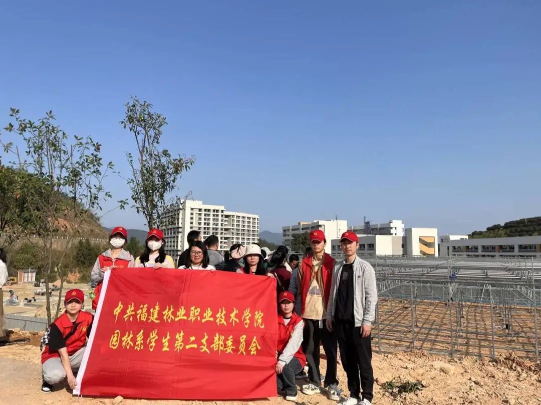 仪式结束后,师生来到“龙景山大学生劳动教育实践基地”开展2023年校园植树主题党团日活动。植树现场,师生们干劲十足,配合默契。大家将一棵棵树苗植入新坑,挥锹铲土,扶正苗木,培土踩实,围堰浇水,为校园增添绿色,用自己的双手为学院播种绿意,用自己的行动和汗水充分展现了林职院师生的良好风貌与责任担当。