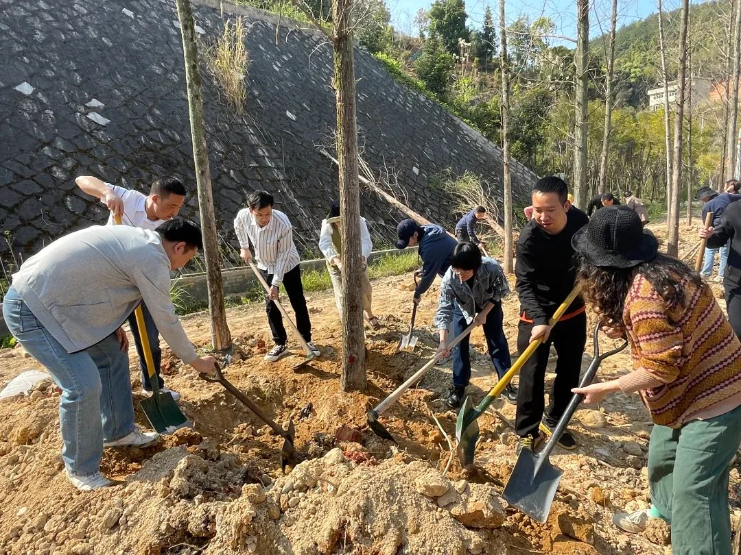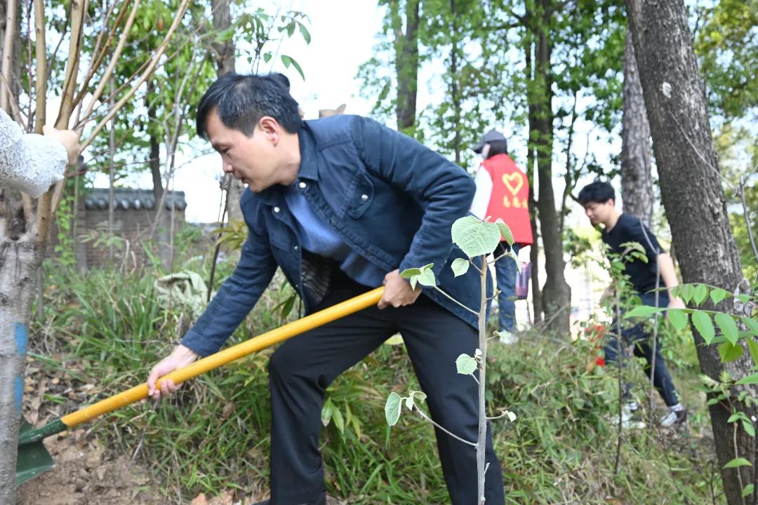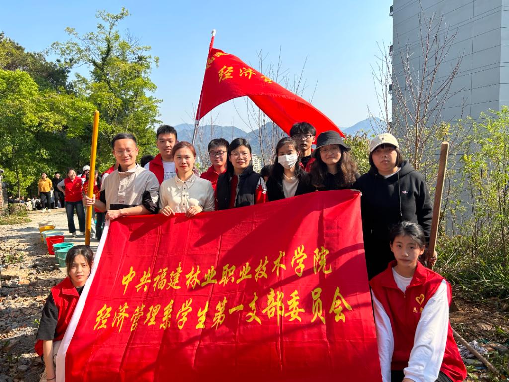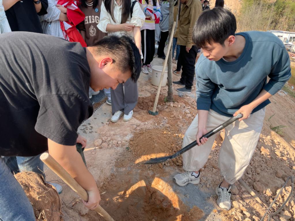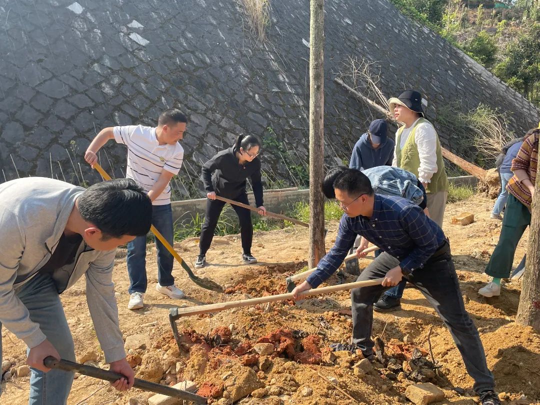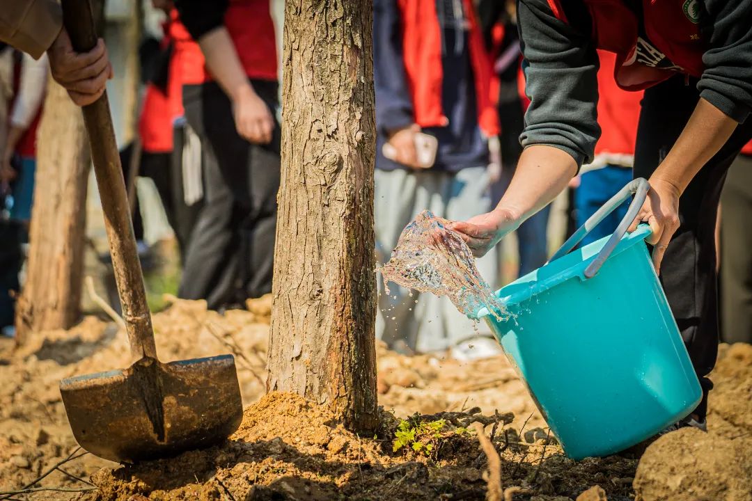 仪式结束后,师生来到“龙景山大学生劳动教育实践基地”开展2023年校园植树主题党团日活动。植树现场,师生们干劲十足,配合默契。大家将一棵棵树苗植入新坑,挥锹铲土,扶正苗木,培土踩实,围堰浇水,为校园增添绿色,用自己的双手为学院播种绿意,用自己的行动和汗水充分展现了林职院师生的良好风貌与责任担当。