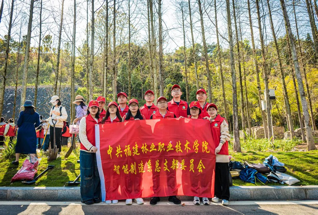 此次主题党日活动,学院近300人参加了植树劳动。在校内共种植树木1000株,其中红叶石楠900株,红花檵木12株,水杉27株,红叶碧桃75株。根据林业碳汇方法学原理进行初步估算,本次造林将固碳4-18吨,为深化福建生态省和实现我国碳达峰碳中和目标贡献了林职力量。