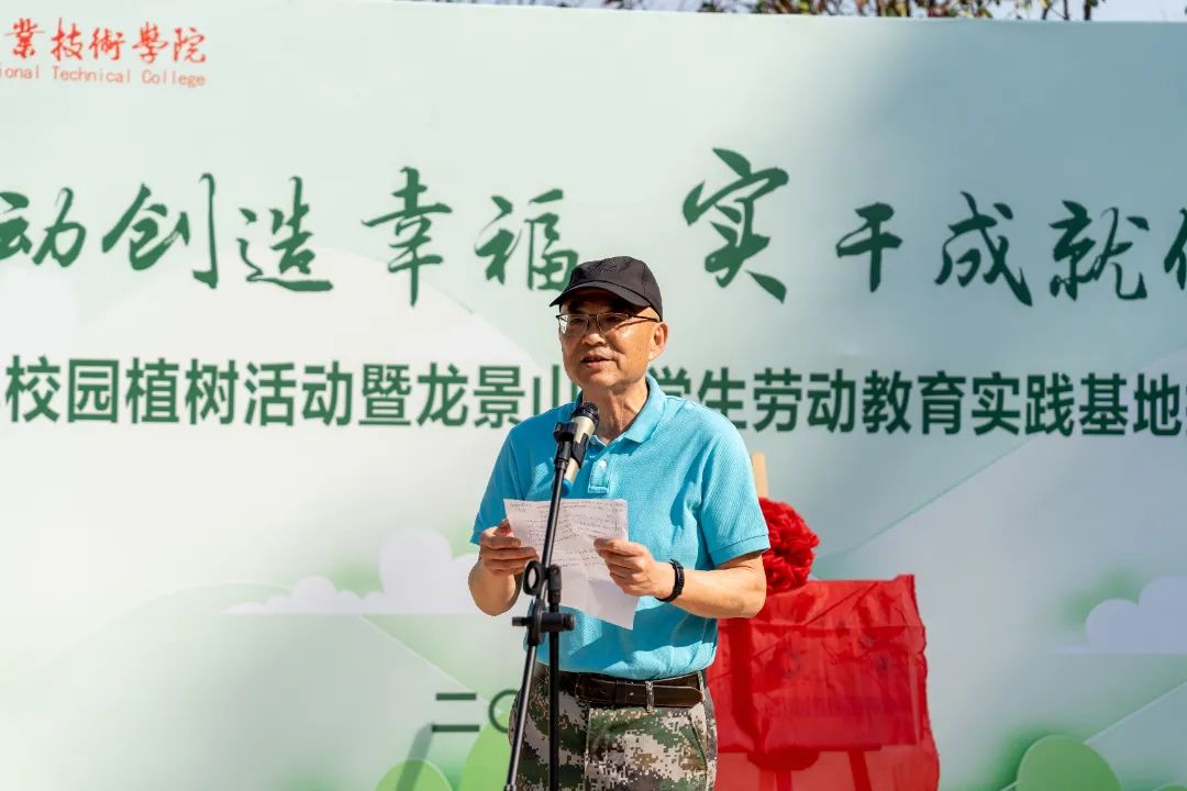 本网讯 阳春三月,春暖花开。恰逢全国第45个植树节,为深入学习贯彻习近平生态文明思想,贯彻党的教育方针,全面落实立德树人根本任务,建立“三全育人”体系,推进“五育并举”融合育人实效,2023年3月16日,学院举行“龙景山大学生劳动教育实践基地”揭牌仪式暨2023年校园植树主题党团日活动,弘扬劳动精神,根植劳动情怀,以劳育人、以德化人。揭牌仪式由副院长李肇锋主持。