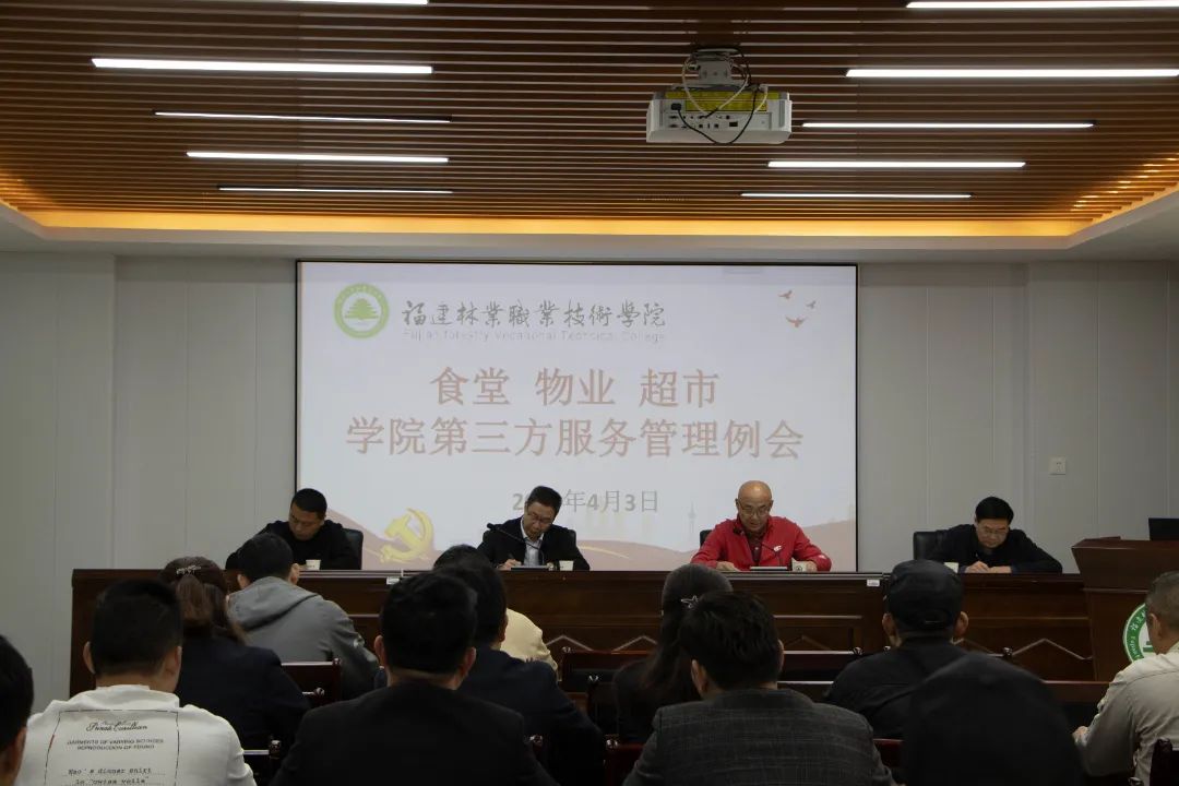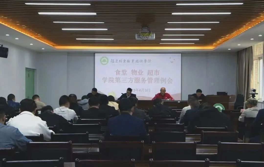 本网讯为推进“深学争优、敢为争先、实干争效”行动开展,进一步加强校园文明建设,规范服务保障工作,4月3日上午,学院召开第三方服务管理例会。院党委书记万泉出席会议并讲话。学院副院长李肇锋主持会议。学院党政办公室、宣传部、后勤管理处、安全保卫处及食堂、物业、超市相关人员参加会议。