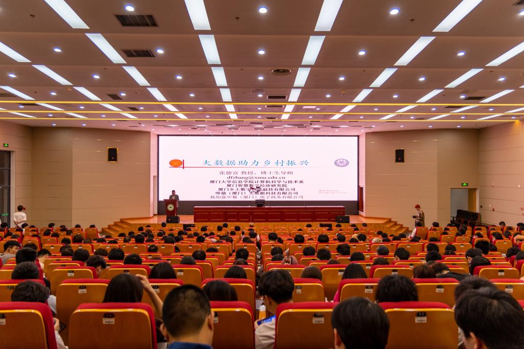 本网讯 为了让同学们深入了解大数据在乡村振兴战略中的重要作用,挖掘和培育服务乡村振兴的大数据人才,切实推进产教融合,赋能乡村振兴,4月13日,信息工程系特邀厦门大学信息学院计算机科学与技术系教授、博士生导师张德富于学术报告厅开展《大数据助力乡村振兴》讲座。讲座由信息工程系党总支书记兼主任华建祥主持,系部领导班子、专业骨干教师、辅导员以及大数据技术专业、云计算技术应用专业学生听取讲座。
