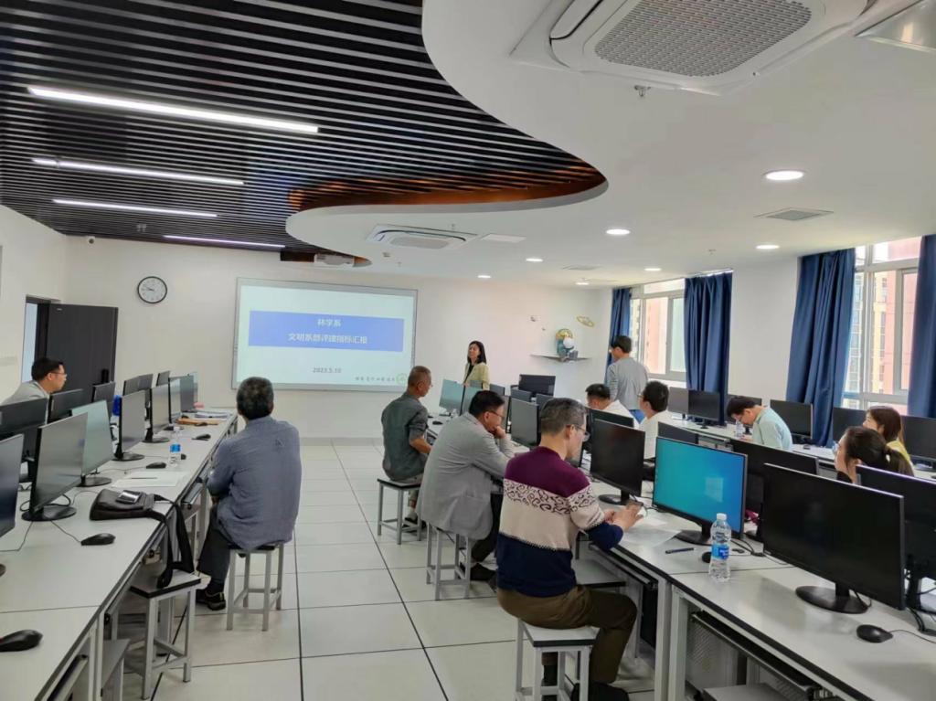本网讯 根据第三届省级文明校园建设的要求,2021年以来,教务处组织开展文明系部、文明教研室评比活动。2023年5月10日—5月15日,教务处组织院内专家校评组开展总评活动。各申报系部和教研室汇报了建设成果,校评组专家认真听取了各单位的汇报后,对标文件精神进行了公平公正的评审,评选出得分前三名的林学系、信息工程系、经济管理系为文明系部,遴选出园林系园林园艺教研室和信息工程系汽车电子教研室为文明教研室。