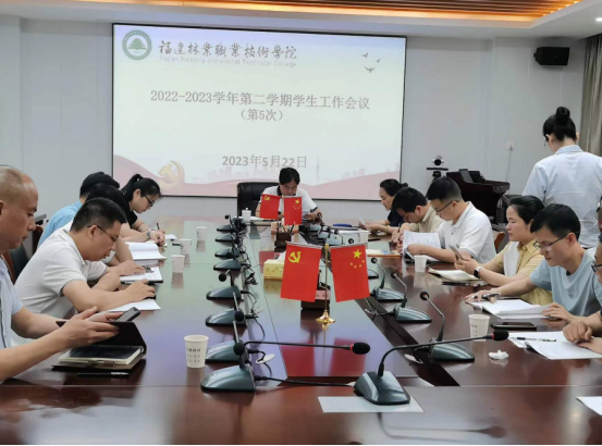 本网讯 5月22日上午,学院2022-2023学年第二学期第5次学生工作会议在江南校区行政楼第一会议室召开。院党委副书记严绍裕主持会议,学生工作部、安全保卫处、团委等部门负责人和各系党总支书记参加了会议。