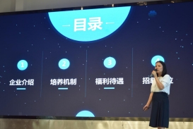 招聘会场内秩序井然,在这次招聘会上的九家企业公司代表依次发言,通过吸引眼球的宣传片、PPT清晰明了的向同学们展示了各企业的企业文化、岗位需求、员工发展空间、员工福利等。