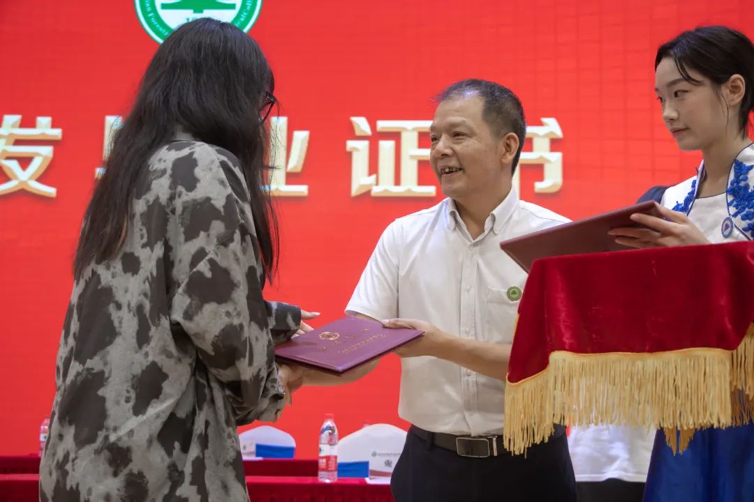 在毕业典礼最激动人心的毕业证书授予仪式中,万泉书记和刘文开院长共同为2023届毕业生代表颁发毕业证书,并与毕业生们亲切合影留念。现场掌声不断,师生脸上都洋溢着笑容,享受毕业礼成的开心时刻。