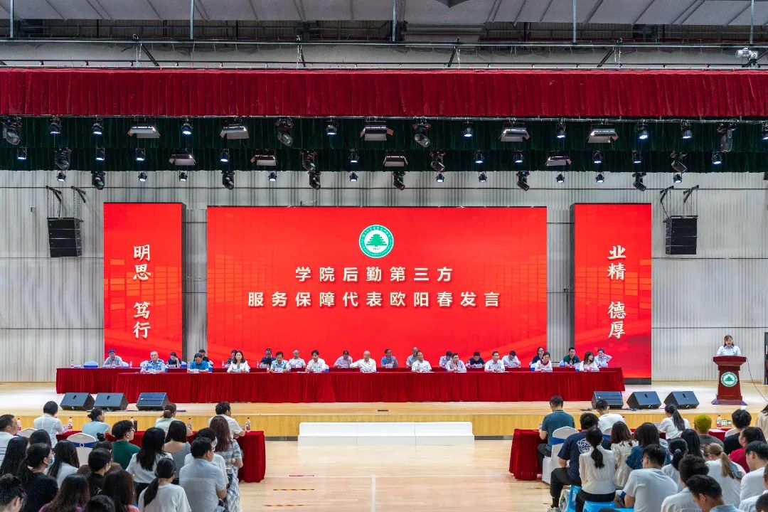 “关心学生,是我们的职责;爱护学生,是我们的义务;热爱学生,是我们的心声。在此,我想对所有的同学说一声,你们安心在知识的海洋里遨游,我们为大家保驾护航。”学院后勤第三方服务保障代表欧阳春经理表示将始终坚持为同学们服务,为同学们的安全保驾护航的初心和使命不变。