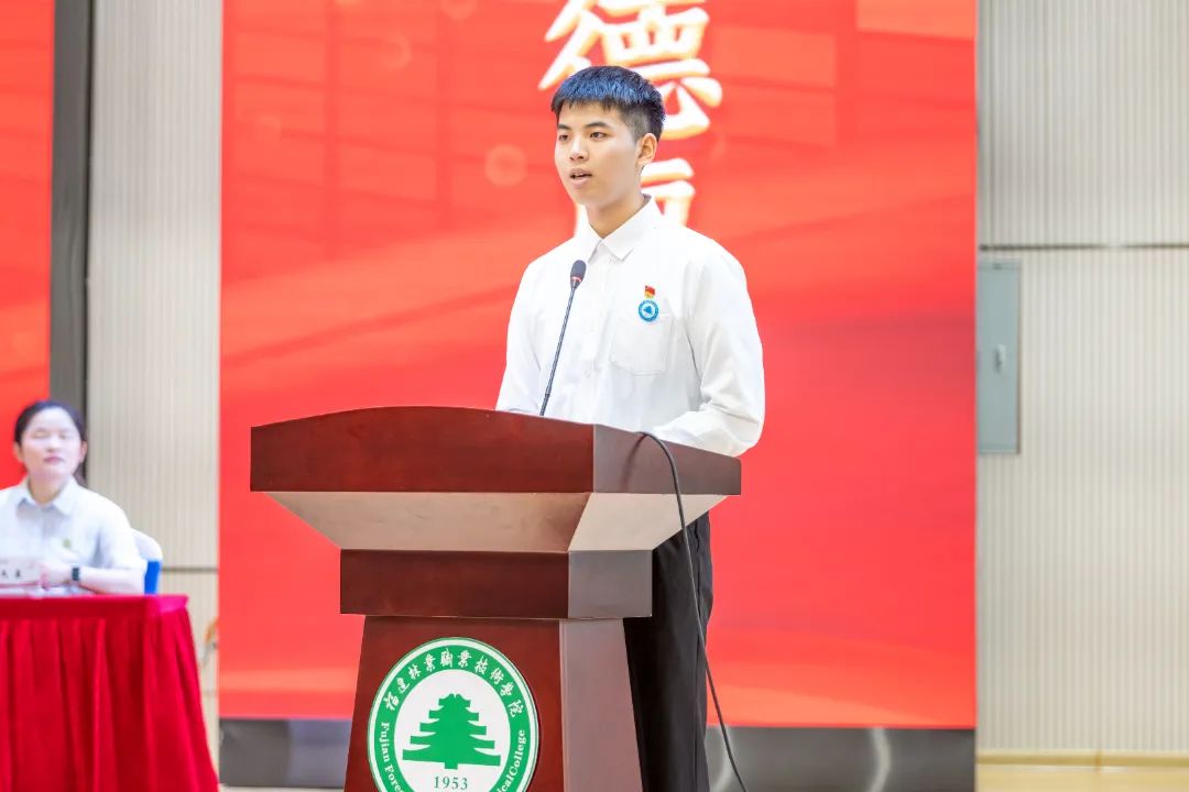 毕业生代表、交通工程系工程造价2004班陈开模发言,总结了自己在林职三年青春时光的收获,表示将铭记林职青年的责任担当,把“敬业、吃苦、务实、进取”的天麟精神灌注到灵魂血脉之中,体现在工作学习生活的各个方面。