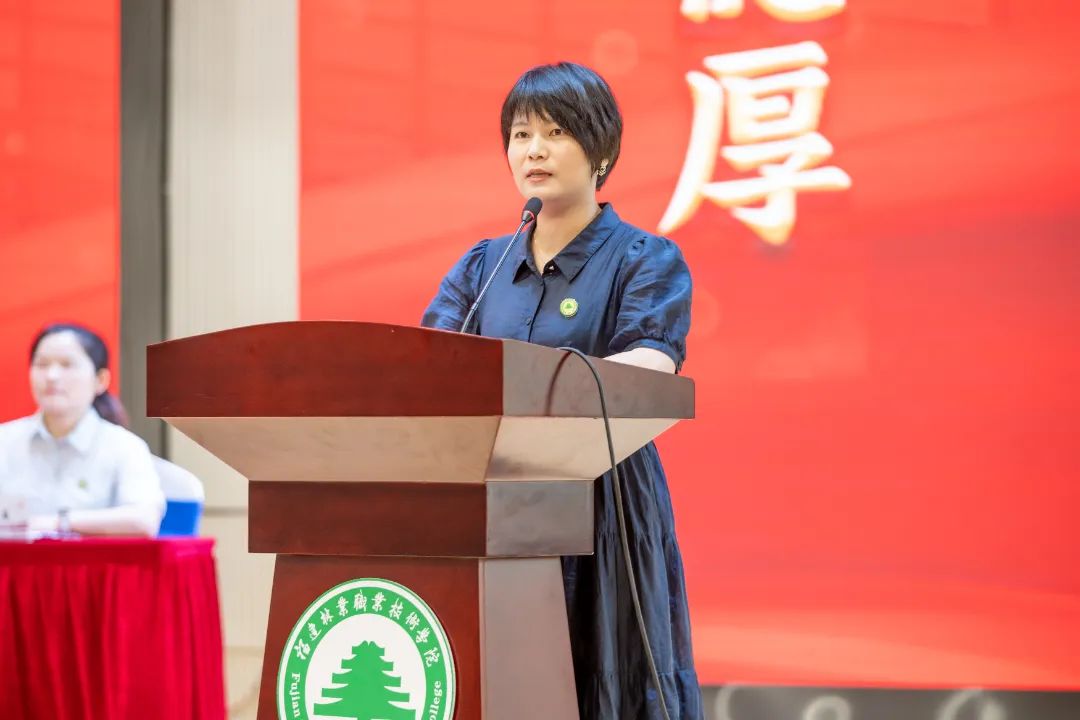 教师代表园林系黄淑燕老师发言,希望全体毕业生定位自己,树立奋斗目标;诚信做人,踏实做事;适应社会,不断修炼。牢记“敬业、吃苦、务实、进取”的天麟精神和“明思笃行、业精德厚”的校训,描绘出出彩的人生。