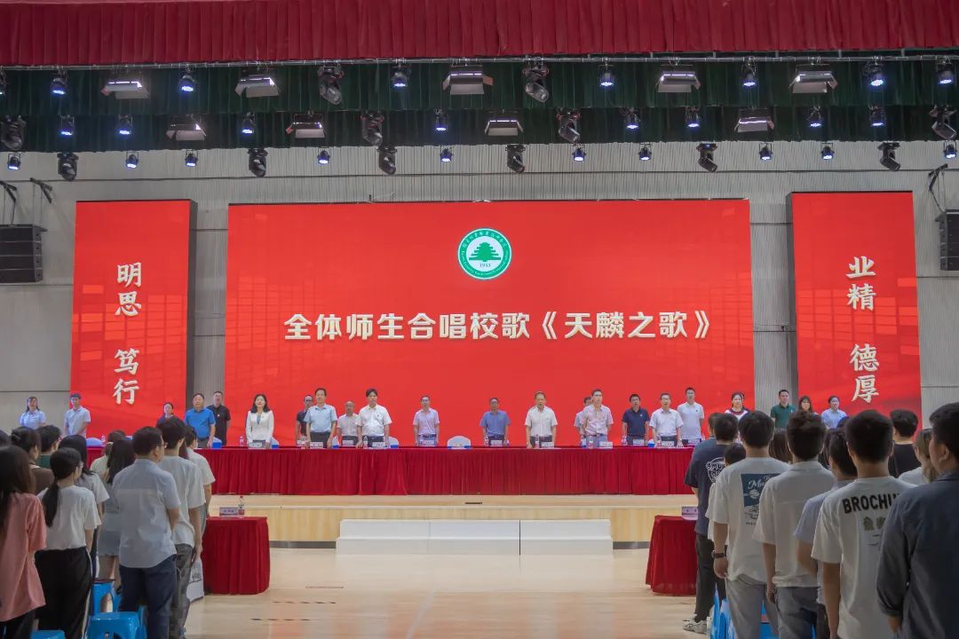 “今天相聚天麟江南,火热的青春把距离融化……”全体师生起立合唱校歌《天麟之歌》,在校歌悠扬的旋律中,毕业生们将踏上新的征程。此刻,一张张褪去稚气的笑脸,一幕幕涌上心头的回忆,交织着收获的喜悦,永远镌刻在这难忘的青葱岁月里。