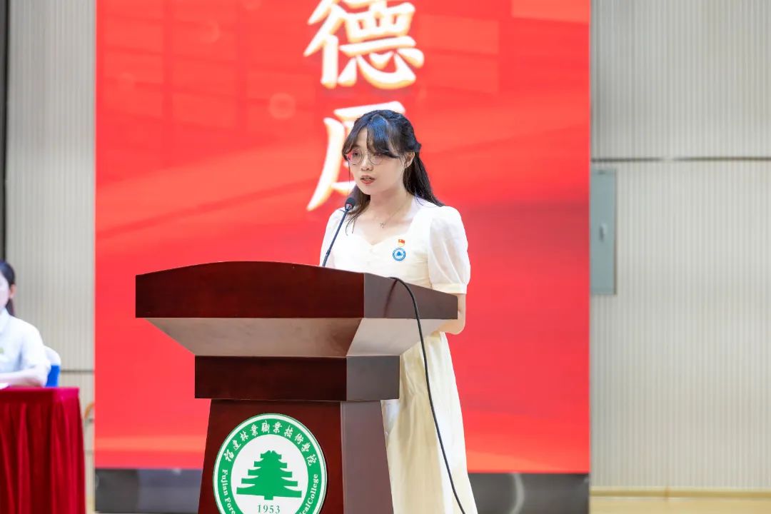 在校生代表、经济管理系大数据与会计2102班吴小倩发言,表达了对2023届毕业生的美好祝愿。