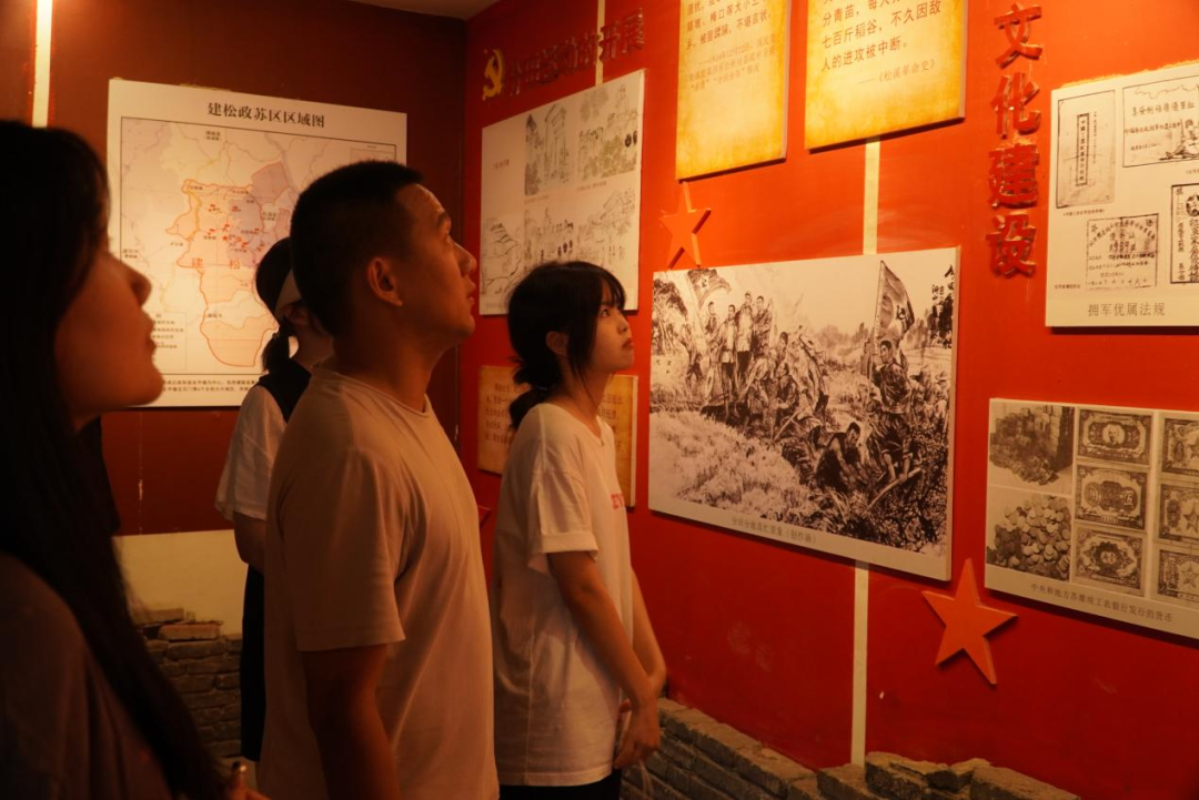 在艺术传媒系学生科科长兼团总支书记廖士喜的带领下,志愿服务队参观了红色文化馆。红色文化馆里展示了梅口区苏维埃政府、闽北游击区、革命老区的光荣历史,以及革命先烈的英雄事迹。艺术传媒系志愿服务队循着中共苏维埃政府在闽北地区的革命足迹,感受其伟大的革命精神。