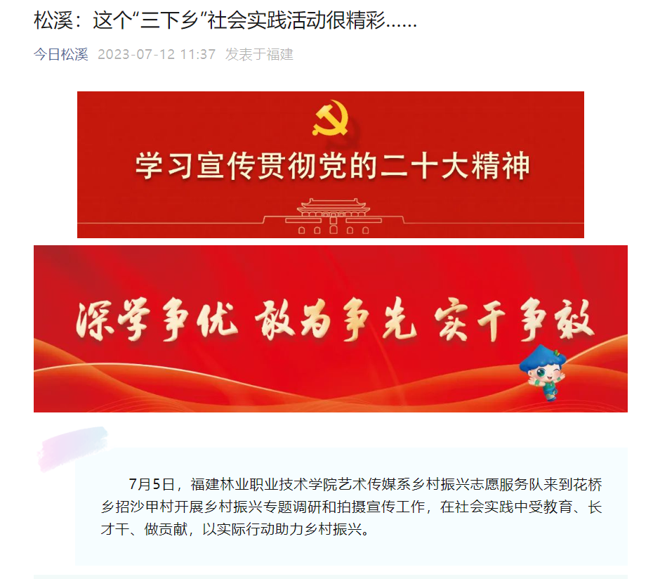 △美丽延平、今日松溪等媒体报道我院艺术传媒系乡村振兴志愿服务队以实际行动助力乡村振兴