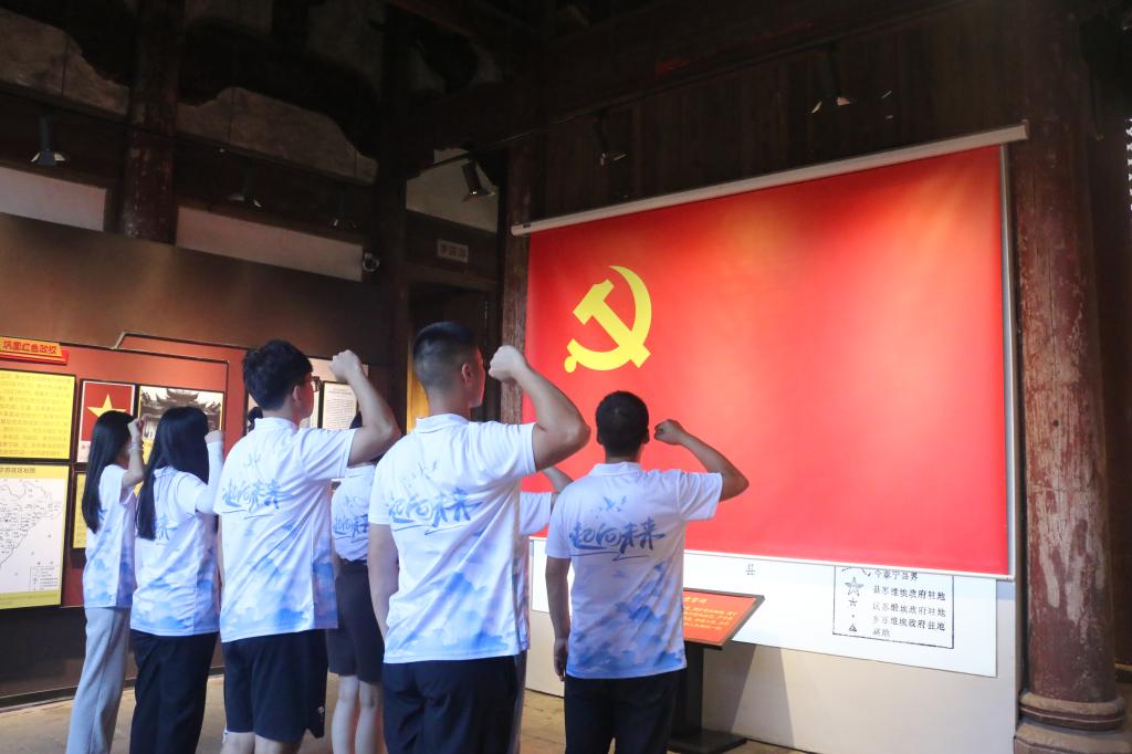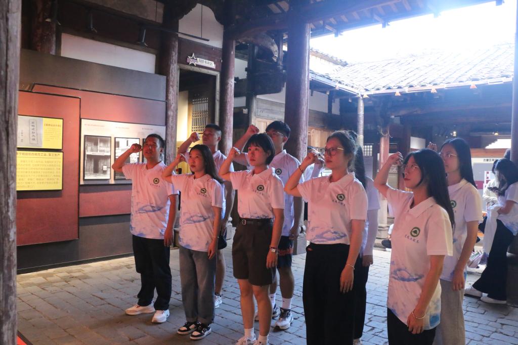李建文老师领誓面向党旗重温入党誓词,缅怀革命先烈,深入学习了解中国共产党在泰宁的红色岁月,继承弘扬中国共产党党员不畏牺牲、不怕艰苦的革命精神,实践队员们一致认为当铭记历史,立足当下,用青春建功新时代,用热血续写新华章。