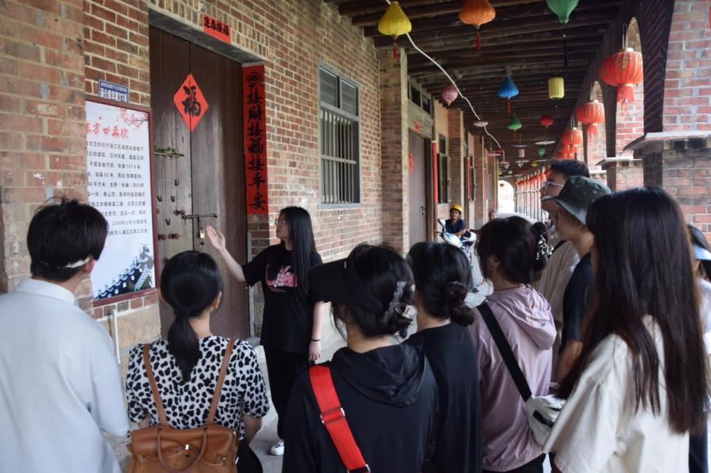 东方廿五坎是现今唯一一座体现涵江上世纪三四十年代繁华景象的商贸建筑,见证了涵江“小上海”的历史风貌。由商人陈济泉和其两兄弟于1933年建造,上层为住宅,下层为商铺。因原有二十九间店面,后被日军炸毁四间,故名“东方廿五坎”。这里不仅有古代砖雕、木雕、石雕等传统文化元素的建筑,也有《白蛇传》、《西游记》等传统文化的故事和传说。厚重敦实的红砖外墙,整齐美观的西式拱门,幽长深邃的中式长廊,中西合璧,犹如一把时光的浆,带人漫溯回上世纪的岁月。实践队员们通过参观东方廿五坎,深刻地认识到中国传统文化的博大精深,也更深切地感受到今天的幸福生活来之不易,在红砖古厝建筑文化间常怀敬畏感恩之心。