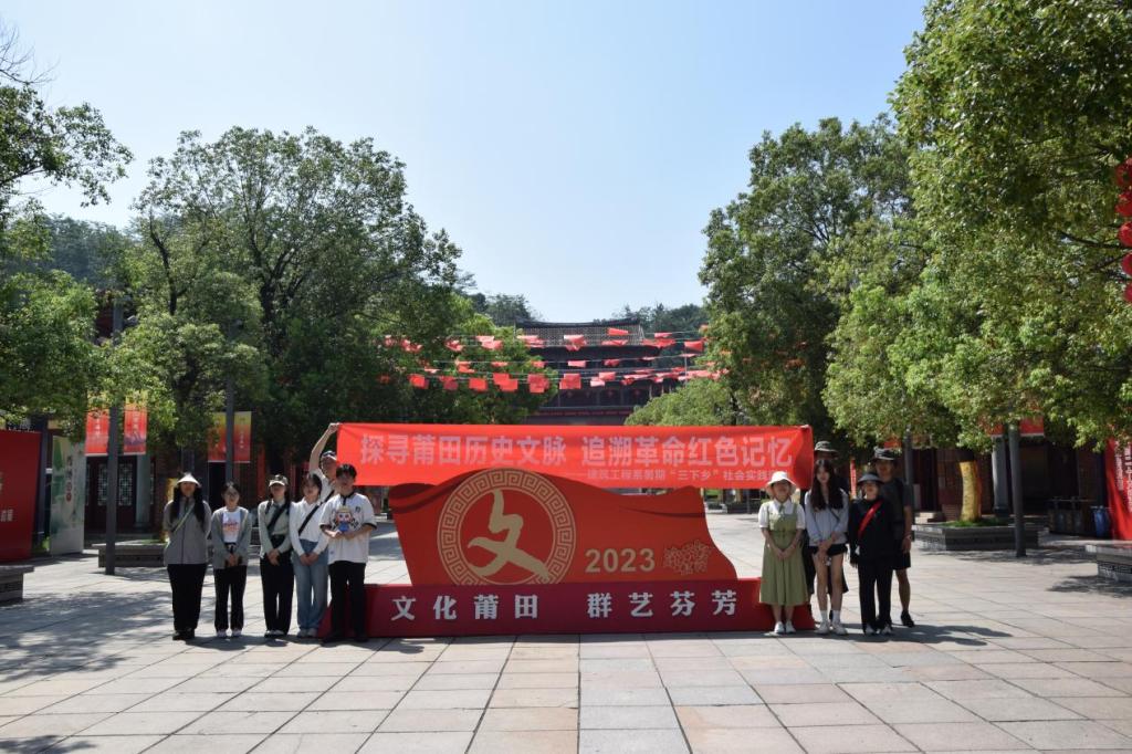 2023年7月8日至7月12日,来自建筑工程系的12名青年学子组成“筑梦”社会实践团,以“探寻莆田历史文脉,追溯革命红色记忆”为主题,在系学生科科长兼团总支书记刘克芹老师、辅导员丁雨涵老师的带领下,走进莆田,通过缅怀革命先烈,研学莆田历史文化,寻访闽中古建筑及学习古建筑保护、利用和传承模式,更好地赓续红色血脉,守护文化根脉。