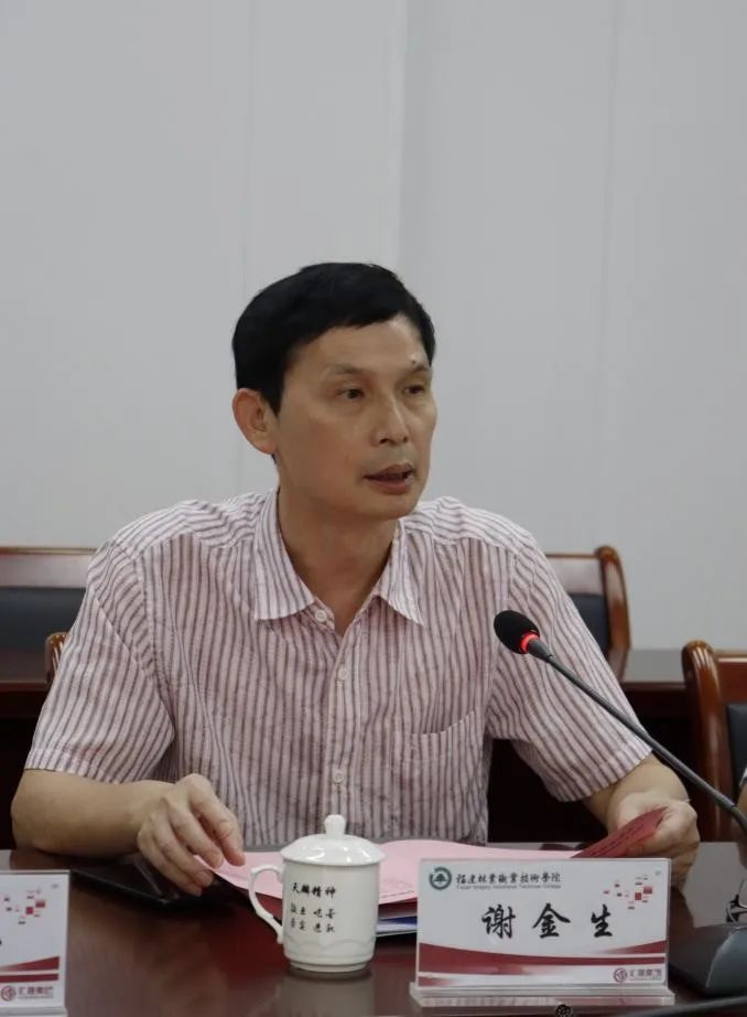 会议伊始,谢金生副院长对到访的夏道镇人民政府、福建空天碳智慧科技有限公司表示欢迎,并就学院发展情况和专业优势进行介绍。