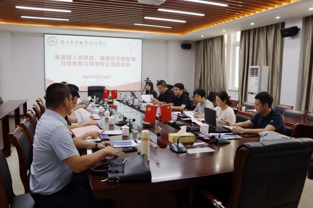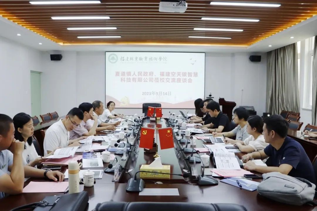 本网讯9月14日,夏道镇党委组织委员苏芳兰、党委经审委员赖源超,福建空天碳智慧科技有限公司总经理项凤华一行莅临我院开展交流座谈。我院院长刘文开、副院长谢金生出席座谈会,党政办公室主任陈政、林学系党总支书记傅成杰等相关人员参加座谈会。座谈会由副院长谢金生主持。