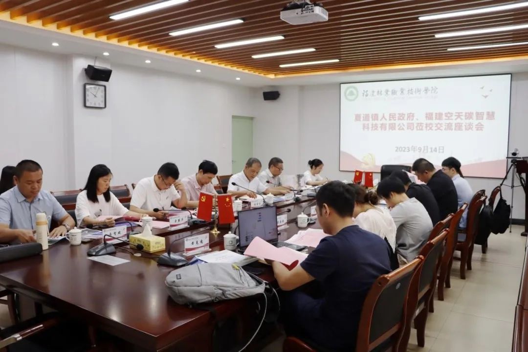 刘文开院长表示,本次座谈会为学院与企业的合作提供了重要机会。他强调,学院期望以此次交流座谈会为契机,进一步加强与福建空天碳智慧科技有限公司的校企合作关系,实现双方的资源共享和优势互补,与企业共同努力,培养适应未来碳普惠领域需求的高素质技能人才,促进教育、科技和产业的协同发展。