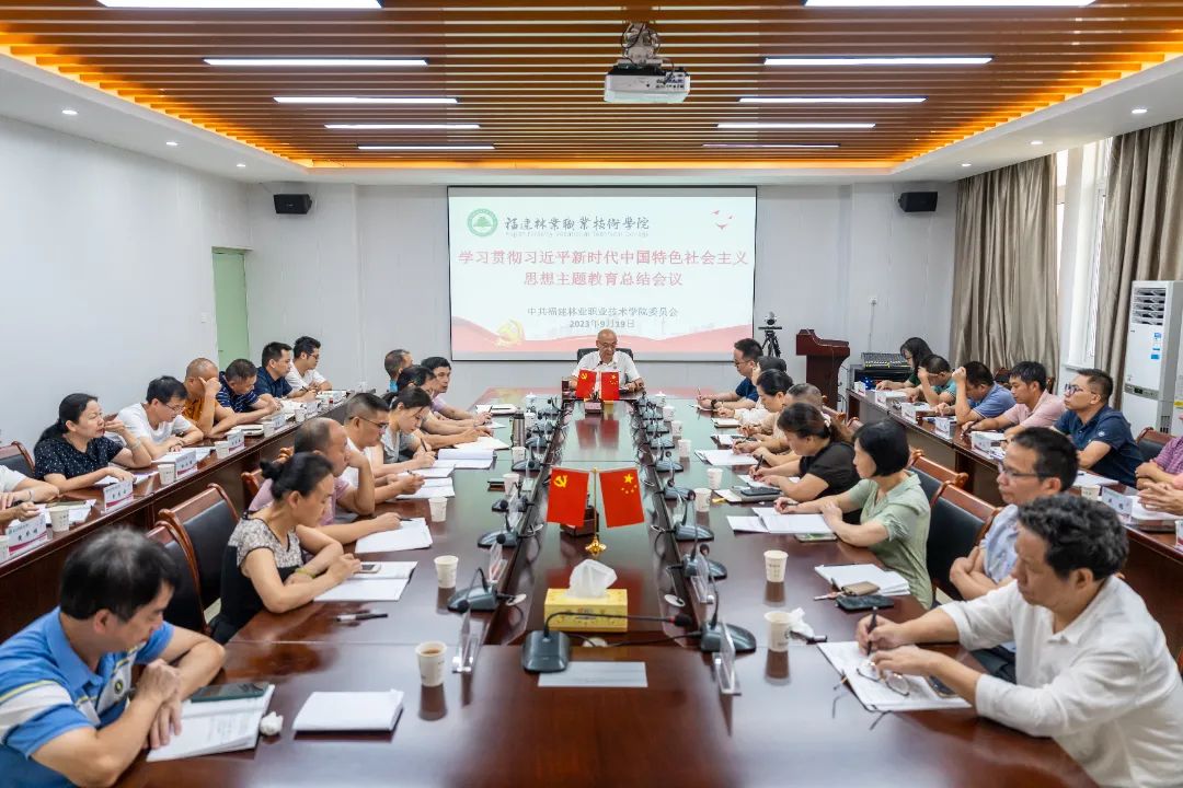 本网讯9月19日,中共福建林业职业技术学院委员会学习贯彻习近平新时代中国特色社会主义思想主题教育总结会议在学院江南校区行政楼第一会议室召开。省委教育工委、省教育厅协调推进二组组员张晓峰、赖文金到会指导。学院主题教育领导小组组长、院党委书记万泉主持会议并作总结讲话。学院在家党政领导出席会议。