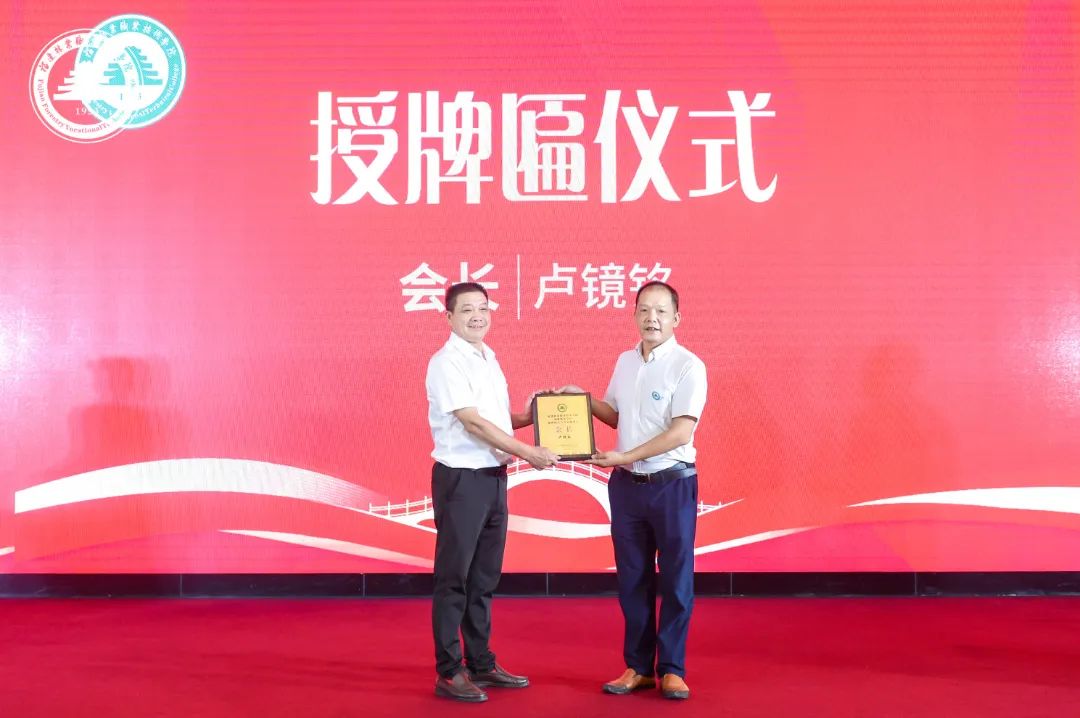 学院院长刘文开给卢镜铭颁发会长牌匾