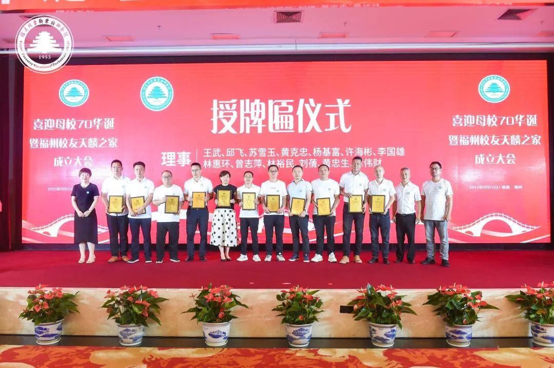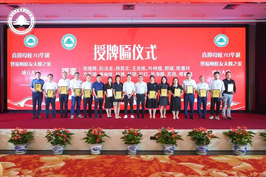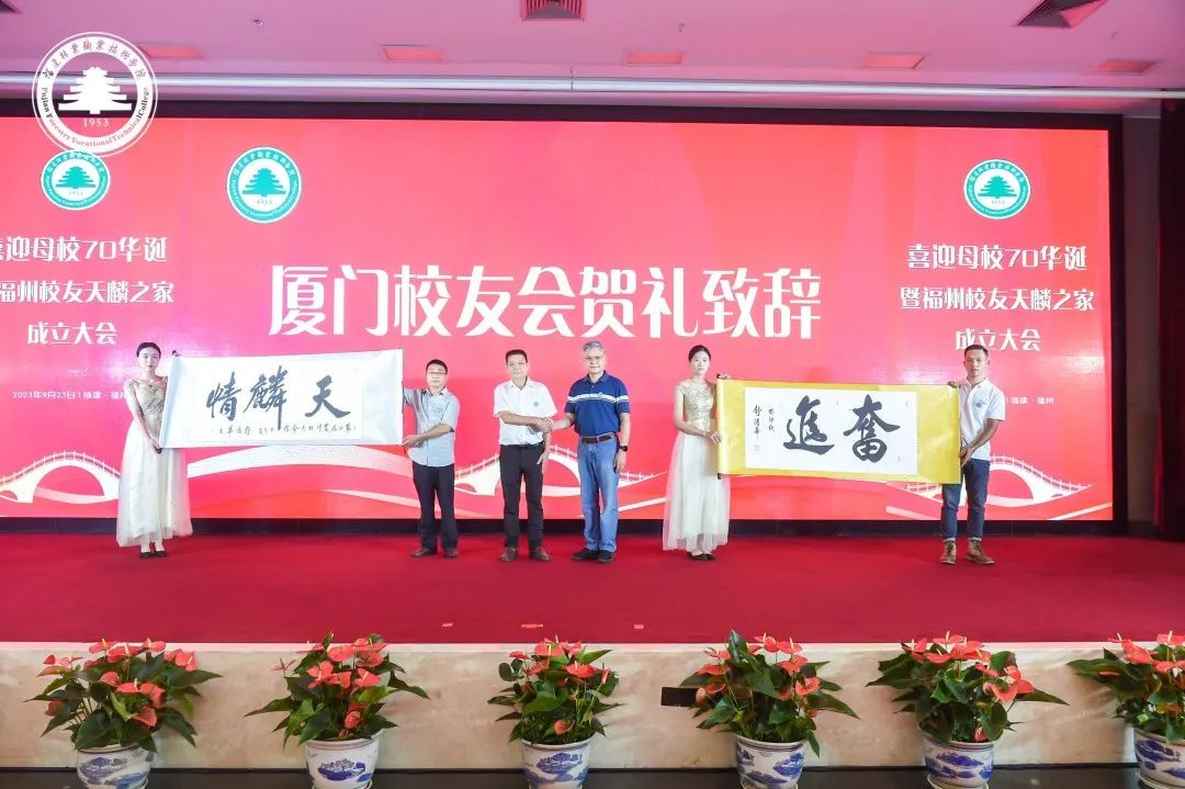 本网讯榕城相聚共庆华诞,天麟传承再续新篇。2023年9月23日,喜迎母校70华诞暨福州校友天麟之家成立大会在福州西湖宾馆隆重举行。学院院长刘文开、副院长黄晖、副院长李肇锋出席活动。党政办公室、实训中心、马克思主义学院、艺术传媒系、经济管理系等部门、系部负责人及教师代表,深圳、福建省九地市及平潭综合实验区校友代表及嘉宾代表250余人参加活动。会议由校友林银、张延芳主持。