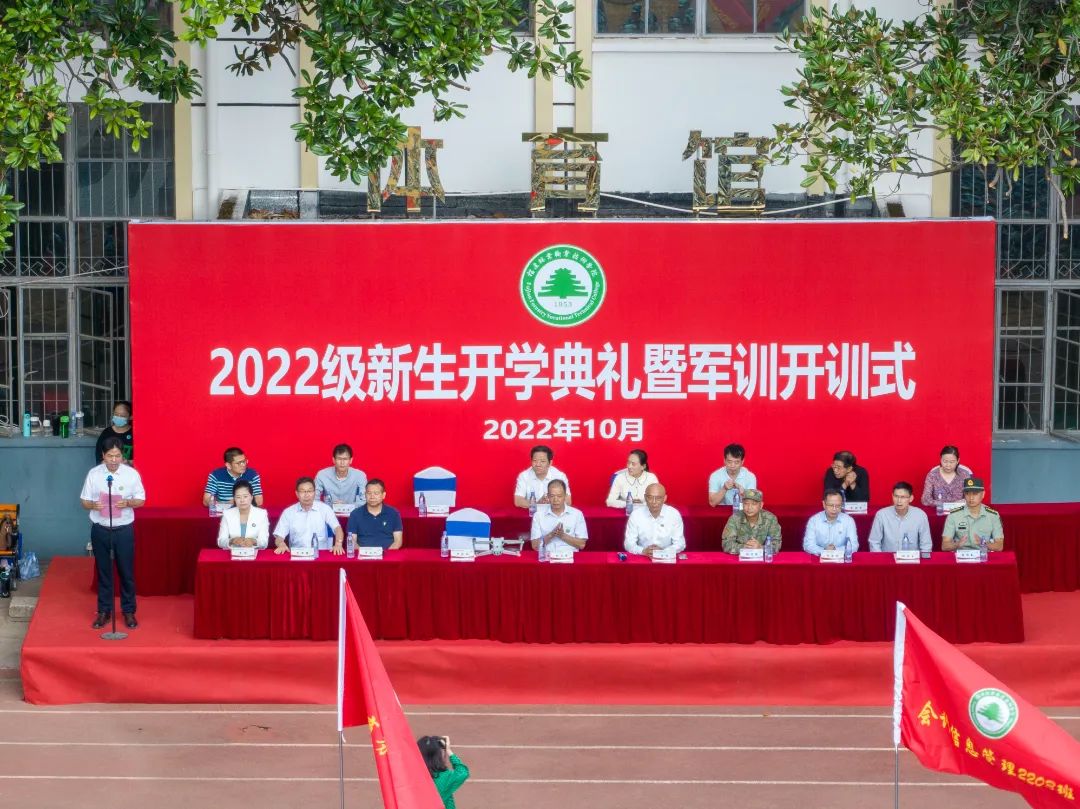 院党政领导,延平区武装部副部长胡启武,夏道镇党委书记李金文,夏道镇、小鸠村、黄墩街道有关领导,优秀毕业生代表、2013级市场开发与营销班庄伟杰,学院相关部门负责人,各系党总支书记、系主任、学生科长、2022级新生辅导员和2022级全体新生出席2022级新生开学典礼暨军训开训式。