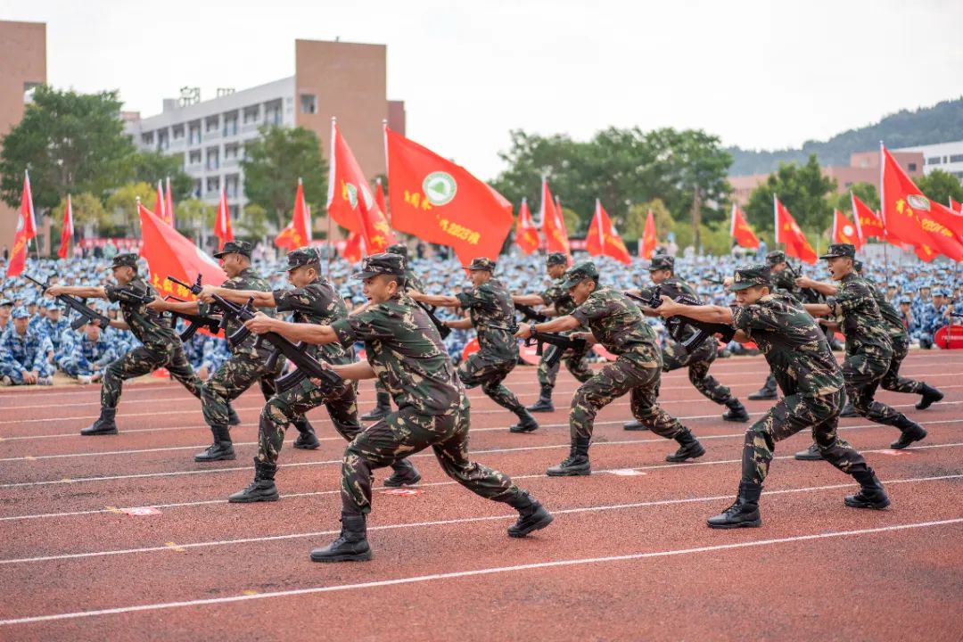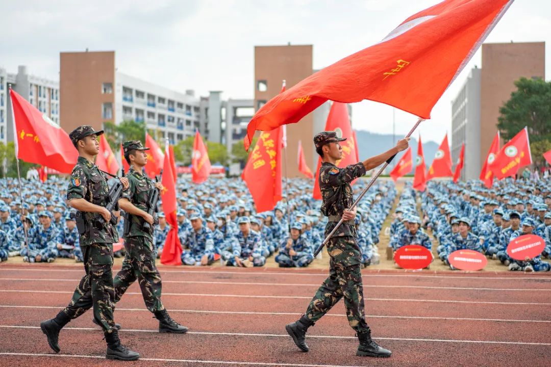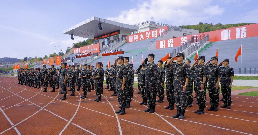 本网讯金秋十月,朝阳初升,在党的二十大即将召开之际,学院的田径场上红旗飞扬,青春洋溢,身着湛蓝迷彩服的2022级新生,不见丝毫松懈,列队整齐,军姿矗立,整装待发。