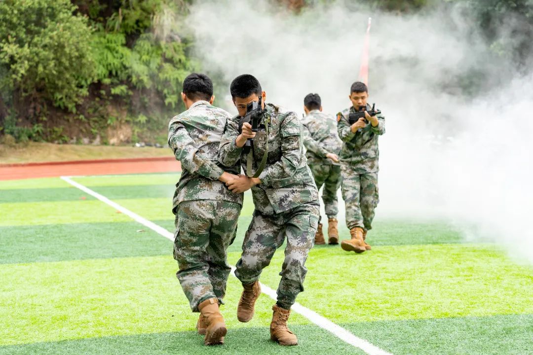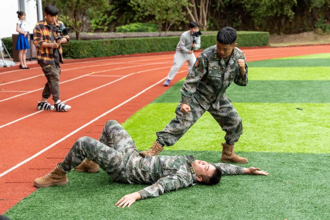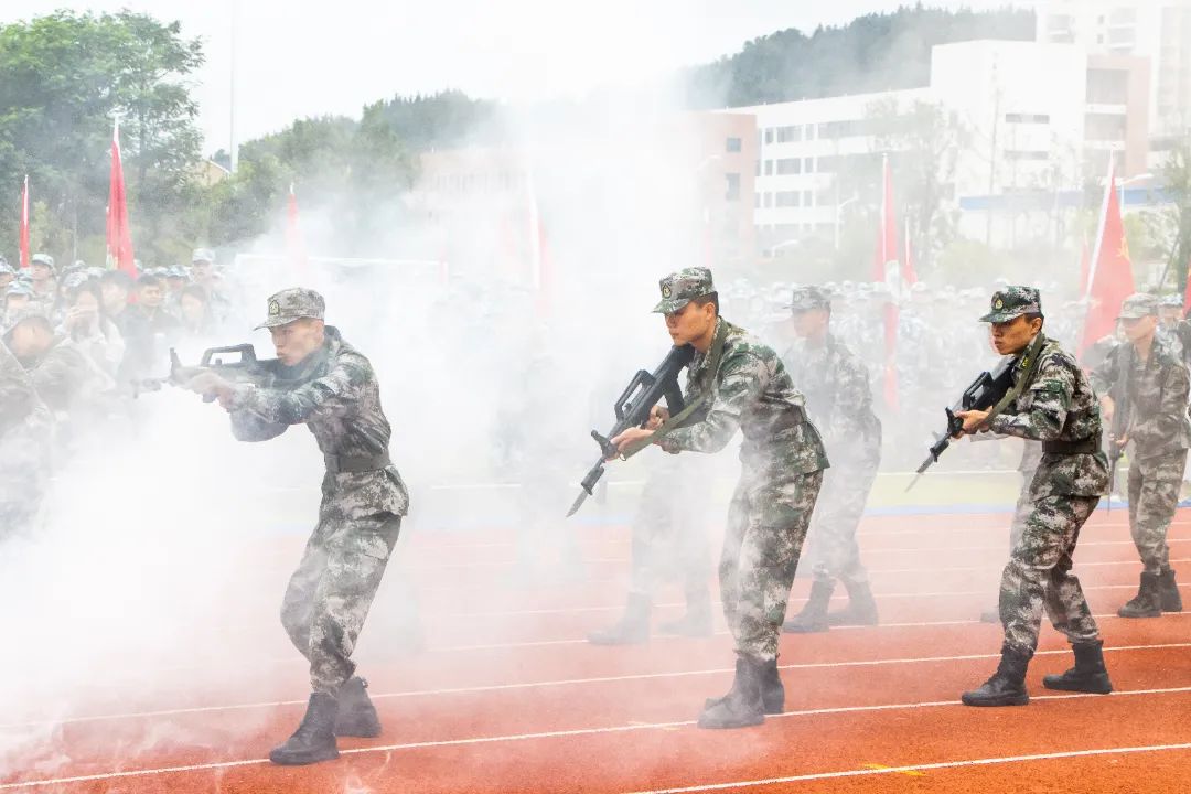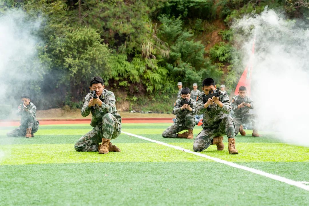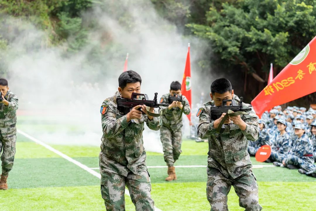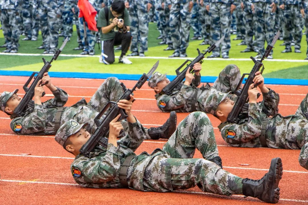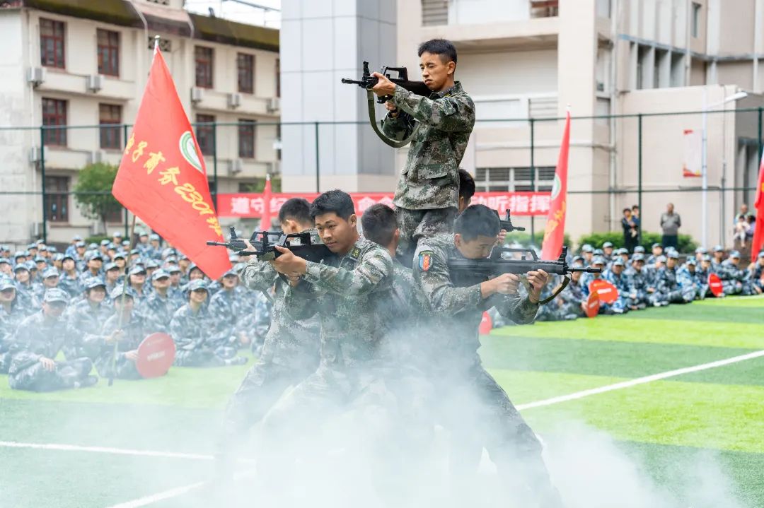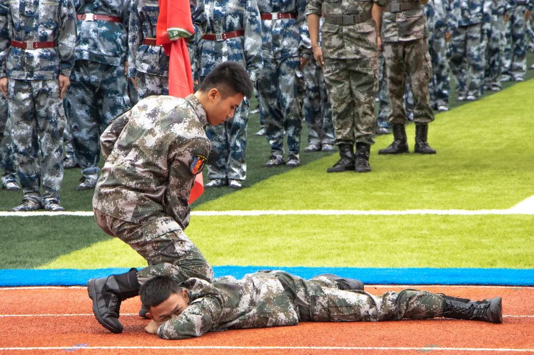 最后,军训团教官向全体人员做军训示范整套动作标准规范、整齐流畅。