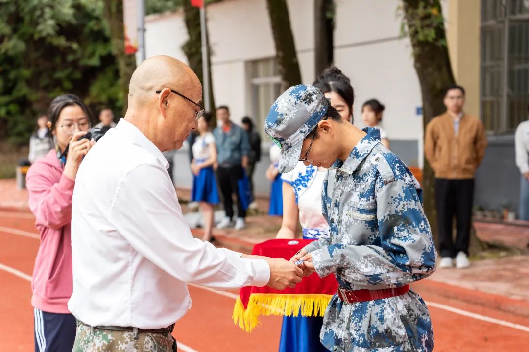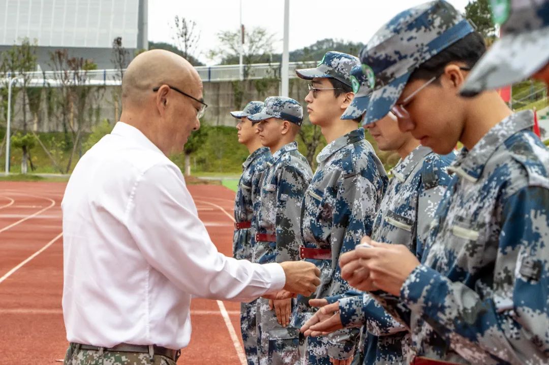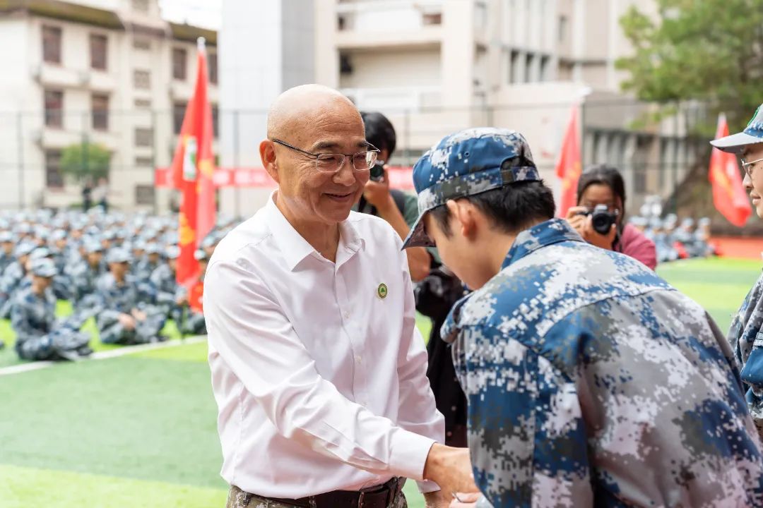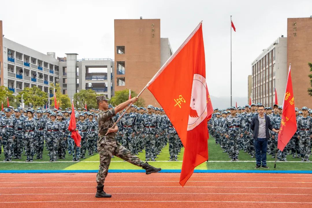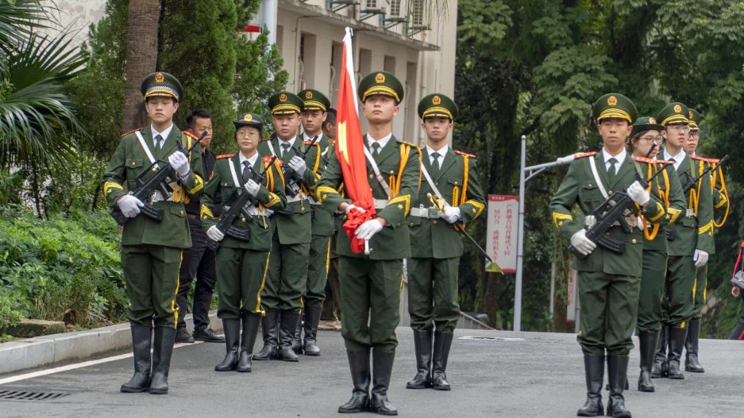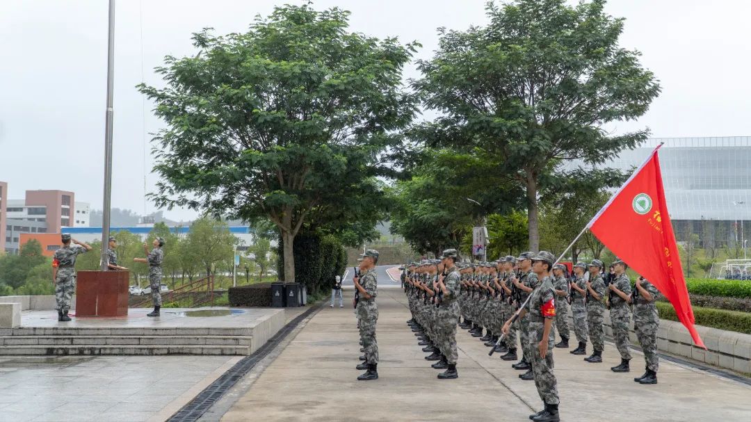 军训授旗仪式上,院党委书记万泉分别为军训团和各连队授旗。风起旗扬,飘扬的军训旗正式拉开了学院2023级学生军训的序幕。