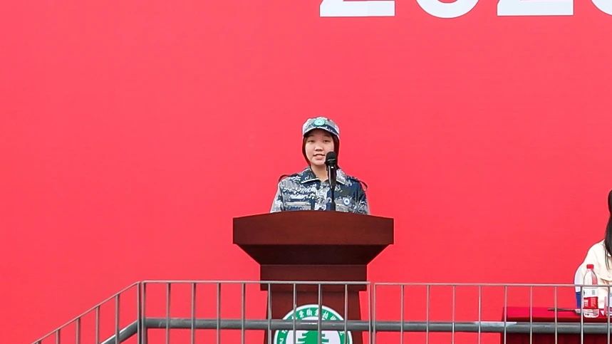 军训教官代表连瑞洁、李尔康发言,希望同学们军训期间,充分认识军训的重要意义,严格要求自己,努力完成军训任务;加强组织纪律性,遵从教官教导,服从命令,听从指挥;学会关心集体,建立深厚的战友情,同学情,增强班级荣誉感;每天训练后认真总结,及时深化心灵深处的精神力量,使之成为将来生活、学习和工作所需的宝贵财富。