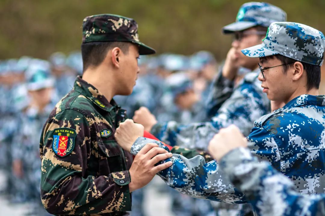 暮色降临,绿茵场上迷彩聚散,一首首催人奋进的战歌,诉说着热血少年们的爱国情、报国志。