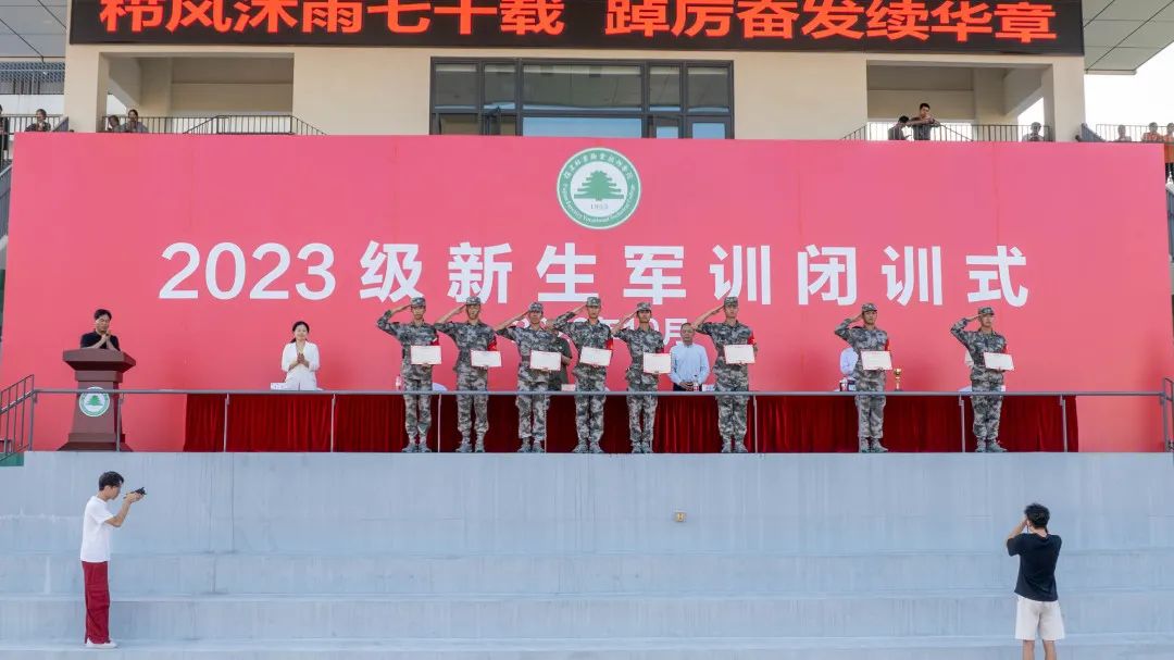 10月24日上午,2023级新生军训闭训式分别在江南校区和天麟校区田径场隆重举行。