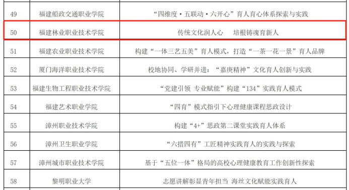 福建省高校思想政治工作精品入选项目